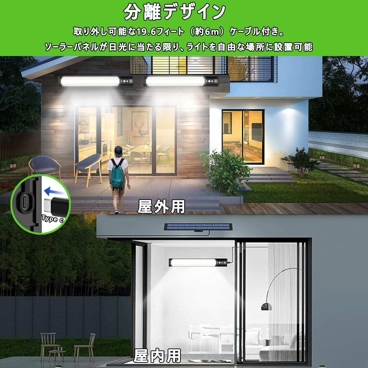 【IP65防水・分離設置可能・2000mAh大容量バッテリー】屋外ソーラーライトはIP65防水防塵仕様で、悪天候でも耐えるように設計されています。当社のソーラーライトは、1つの太陽光パネルに2灯連携。各ライトは3mのケーブルでソーラーチャージパネルに接続されています。そのため、ソーラーチャージパネルを屋外に設置して充電しながら、ライトを室内や屋根下に設置することが可能です。また、各ライト2000mAh大容量のバッテリーが内蔵されており、フル充電で雨の日でも日当たりの時間が短い冬でも長時間使用しても心配がありません。原玄関、軒先、庭、廊下、パーク、ガーデン、ポスト、ベランダ、駐車場など場合に大活躍!