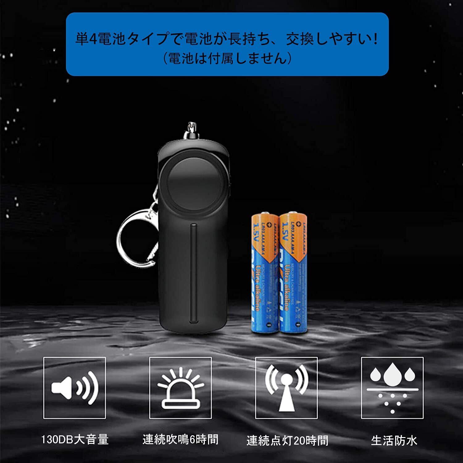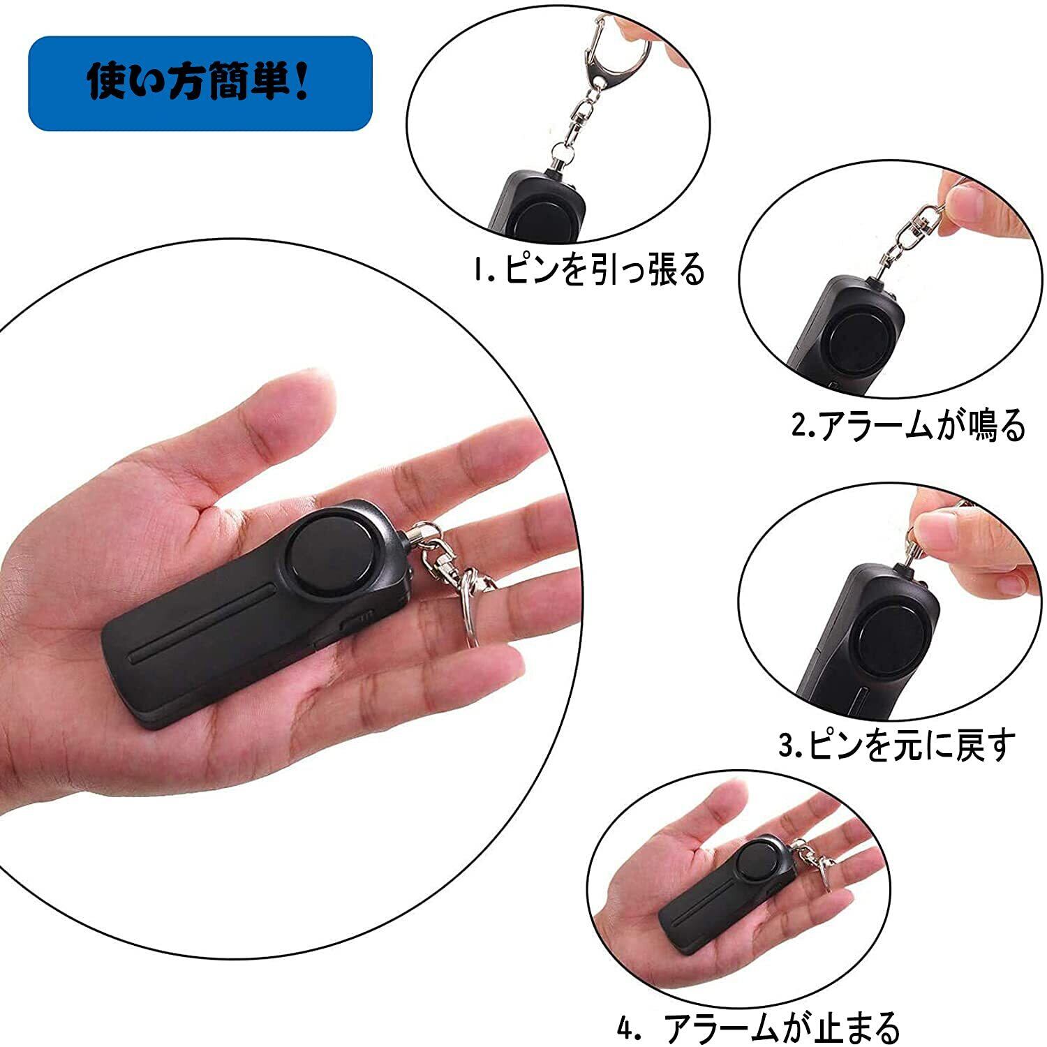 防犯ブザー【2個入り 黒+白】防犯アラーム 130dB 大音量 LEDライト付き 防水 防犯ベル 小学生 男の子 女の子 子供 女性 シンプル 防犯 ブザー/ 防犯グッズ ランドセルに付ける