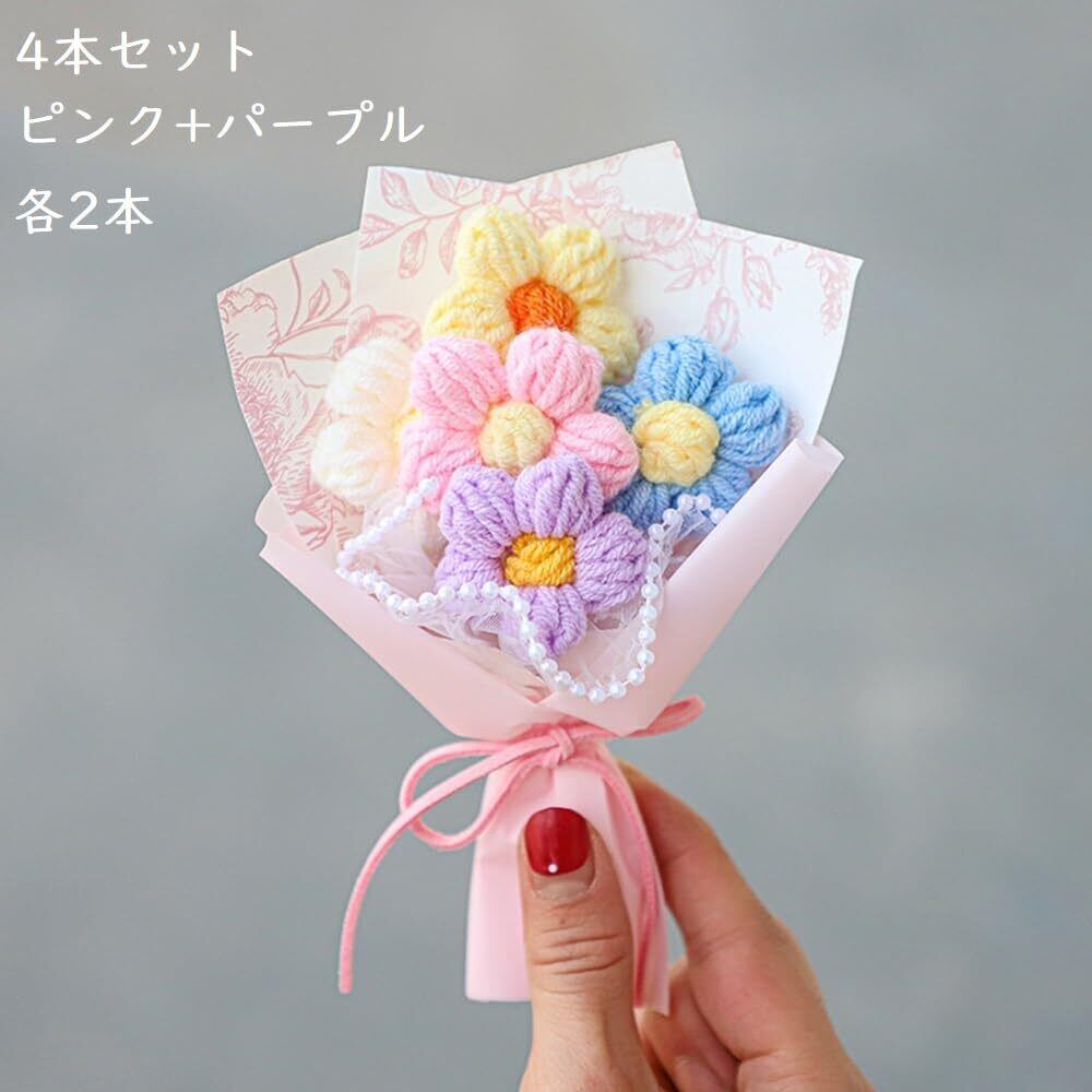 koundeneko ミニ かぎ針編みの花束 4本セット 編み物 花束 ミニ ニット フラワー かわいい ニット造花ブーケ バレンタインデー 誕生日 プレゼント ガールフレンド 妻 女性 ニットブーケ