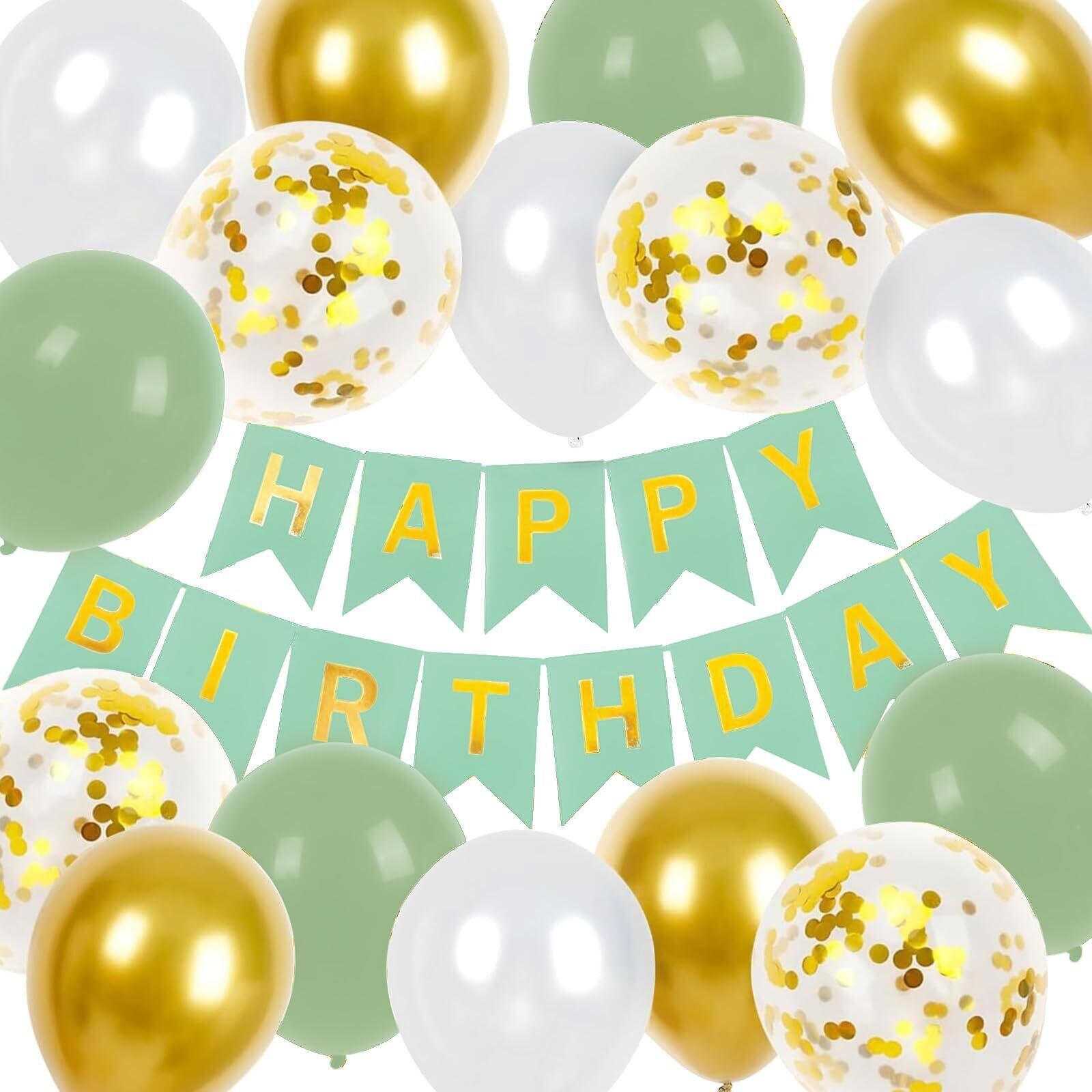 【2022最新】誕生日 バルーン 風船セット HAPPY BIRTHDAY ガーランド きらきら紙吹雪風船 飾り付け 飾り 装飾 バースデー パーティー サプライズ お祝い イベント(ゴールド+グリーン,子供・大人向け)