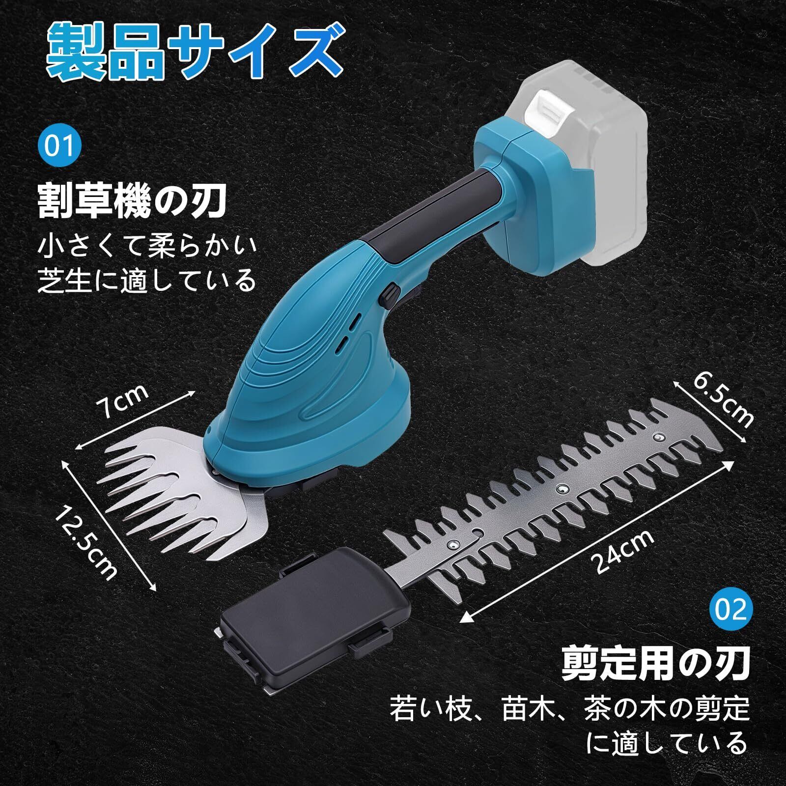 【2022最新】電動 ヘッジトリマー 充電式 マキタ 互換 芝生バリカン 充電式 1台2役 両刃駆動 刈込幅 240mm/125mm 低騒音設計 剪定トリマー 生垣バリカン ガーデントリマー 小型 軽量 高速 剪定 電動工具 草刈り 雑草 芝生 ワンタッチで付替可能【バッテリー・充電器別売り】