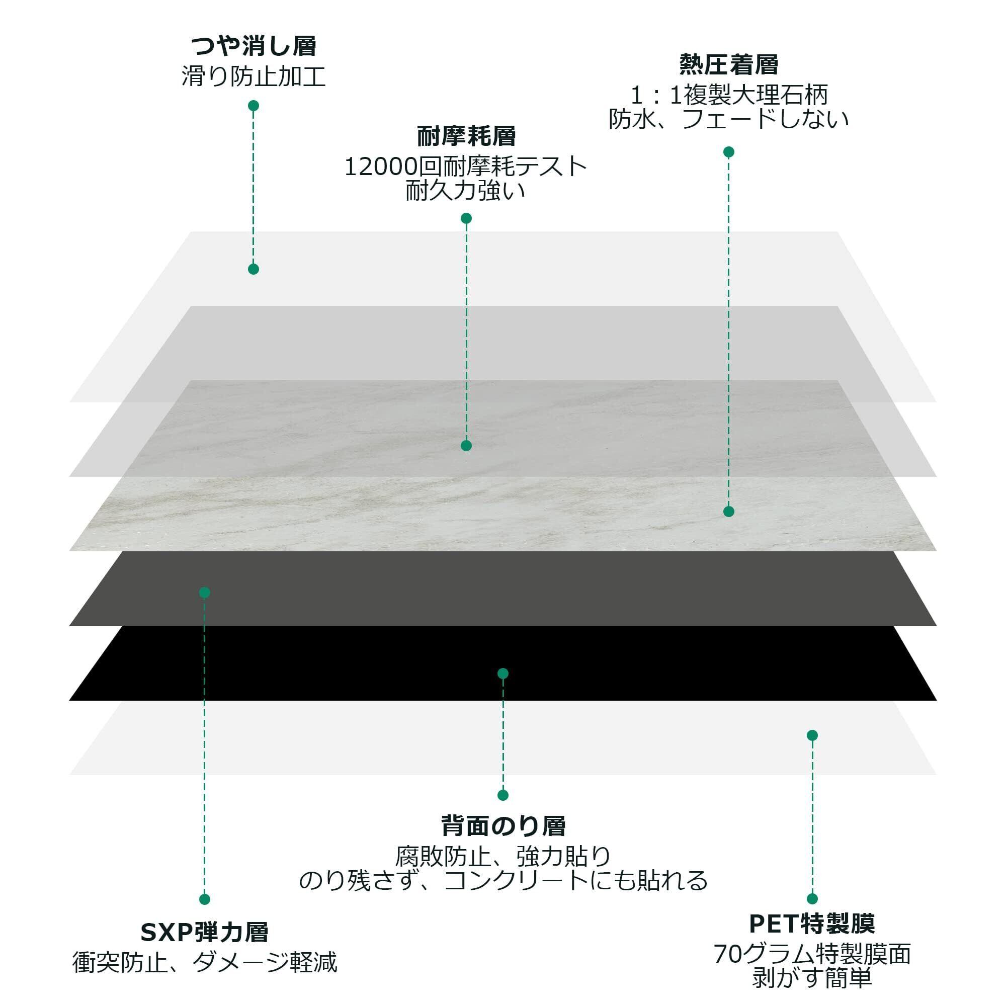 【傷防止・防汚・滑り止め】表面には厚手クリア加工が施され、耐久性と耐摩耗性に優れています。防水、防汚性に優れています。滑りにくい仕様となっています、土足でも対応できます。キッチン、トイレ、子供部屋、リビング、ダイニング、玄関、店舗、脱衣所、洗面台、カフェ、オフィス、幼稚園、保育園、託児所、病院などでお使いおすすめます。