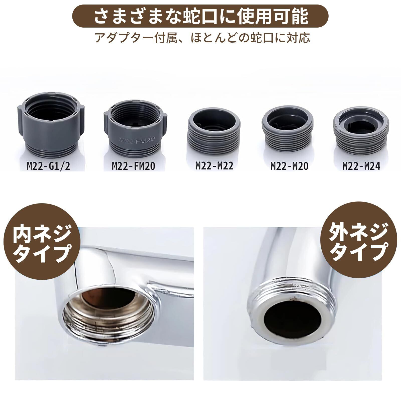 【商品仕様】ダブル機能蛇口シャワー:(内ネジM22)x 1、5つのサイズがアダプタキットに適しています:M22-G1/2M22-FM20/M22-M22/M22-M20/M22-M24、シールリング×2、スパナ×1。