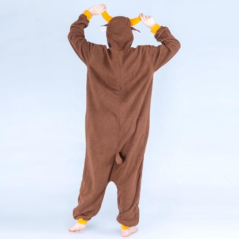 軽くてあったか素材で仕上げたトナカイ 着ぐるみ。頭から足首まで全身を包み、一瞬間に可愛い動物に変身!サイズはS、M、L、XLがあり。サイズ: S 着丈130cm バスト124cm 袖丈52cm 推薦身長145-155cm; M 着丈140cm バスト128cm 袖丈54cm 推薦身長156-165cm; L 着丈145cm バスト132cm 袖丈56cm 推薦身長166-175cm。