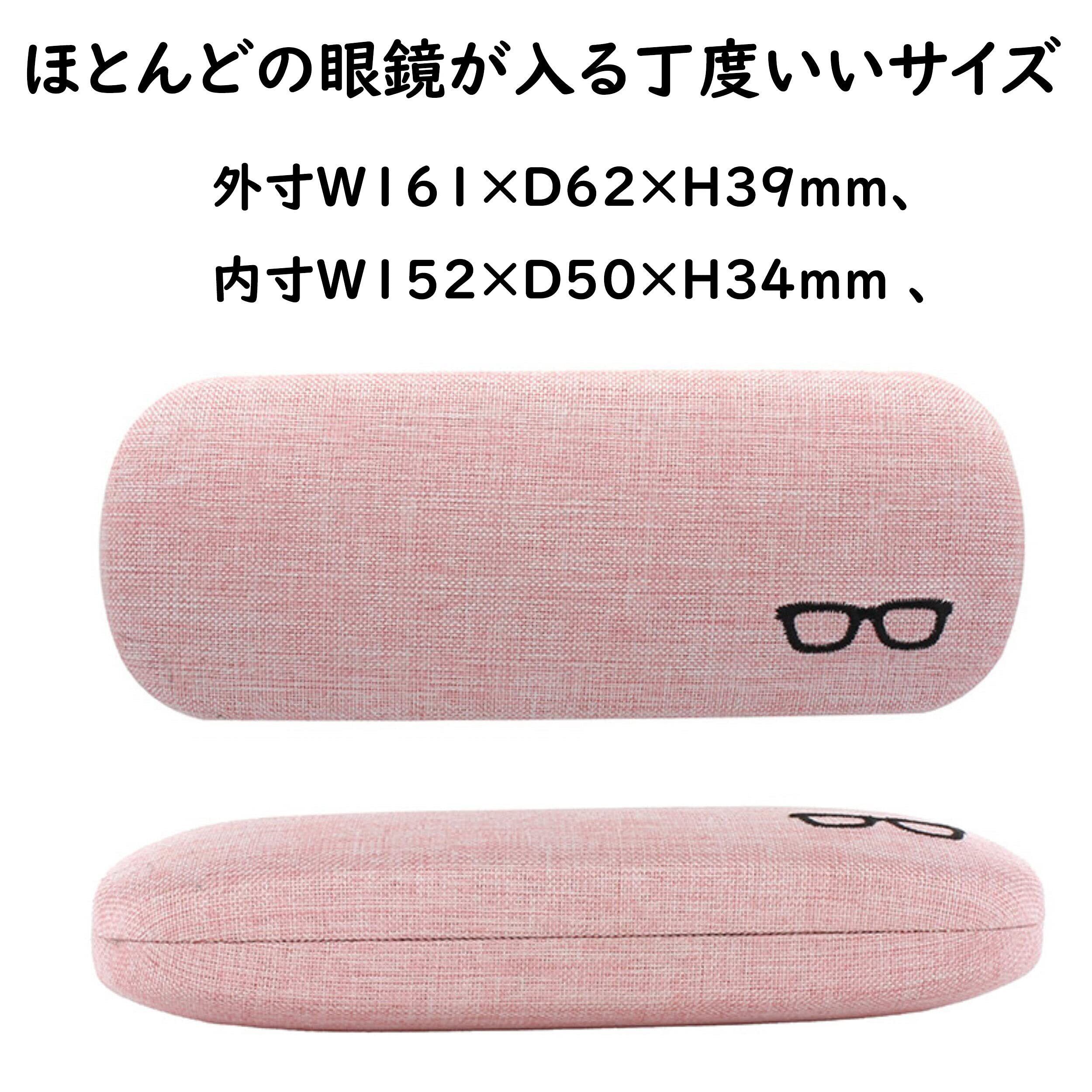メイガン(Meigan)メガネケース メタル ハード ラウンド コンパクト おしゃれ ファブリック 生地 かわいい ワンポイント 眼鏡刺繍モチーフ メンズ レディース 兼用 ピンク 2235-03