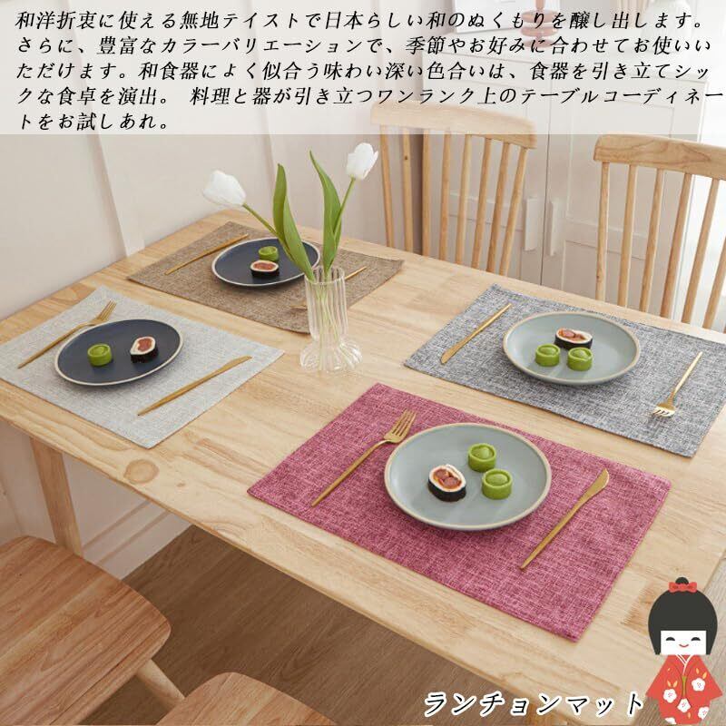 【様々な場所で活躍】ランチョンマットはレストランだけではなく、キッチン、部屋、食堂、ホテル、幼稚園、家庭食事マットなどの場所も使うことができます。ご注意:配送の都合上、折りたたみ状態で配送いたします。それにより折り目が付いている場合がありますが、時間経過と共に消えていきます。お気になる場合は低温でアイロンをかけていただくとより効果的です。