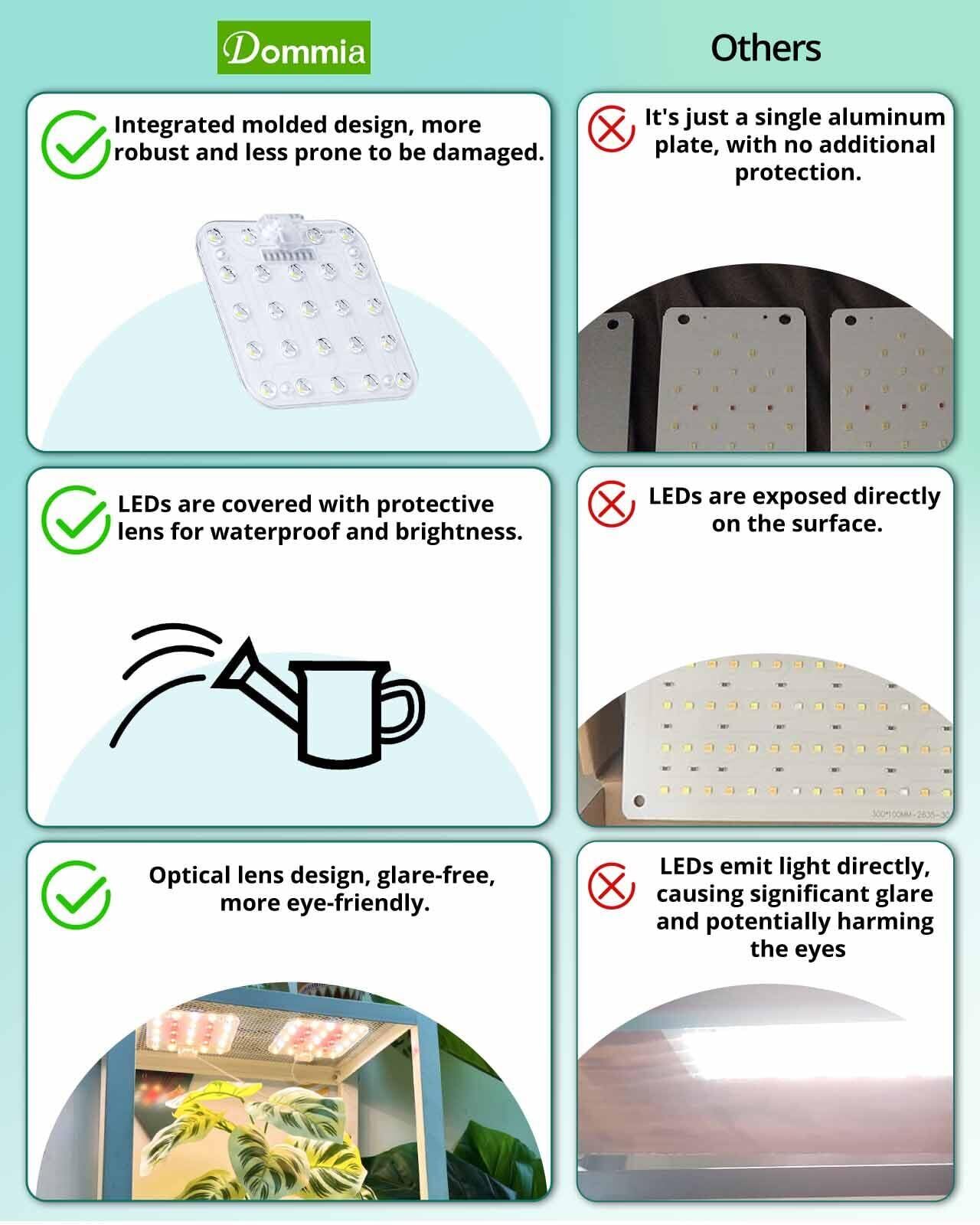 先進的な光学レンズカバー-DOMMIAアップグレードされた植物用ledライトを使用して、比類のない成長を体験します。この革新的な植物光は光学レンズと薄いアルミニウム板を持ち、光エネルギーを集中させ、95%以上の効率を確保することができる。観葉植物 ライト、最適なカバーと最大吸収を提供し、優れた効果を提供します。蓋は防水、静電気防止。