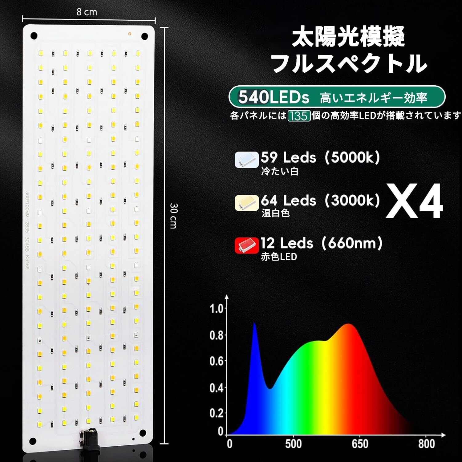 【高いエネルギー効率 ・省エネルギー】4つの超薄型成長ランプパネルを備えたこの成長光は、30 x 8、40 Wが特徴です。アルミニウムバックシートを採用すると省エネの低熱生成が発生する。色温度は5000 k、寿命は50000時間である。実用的で便利です。