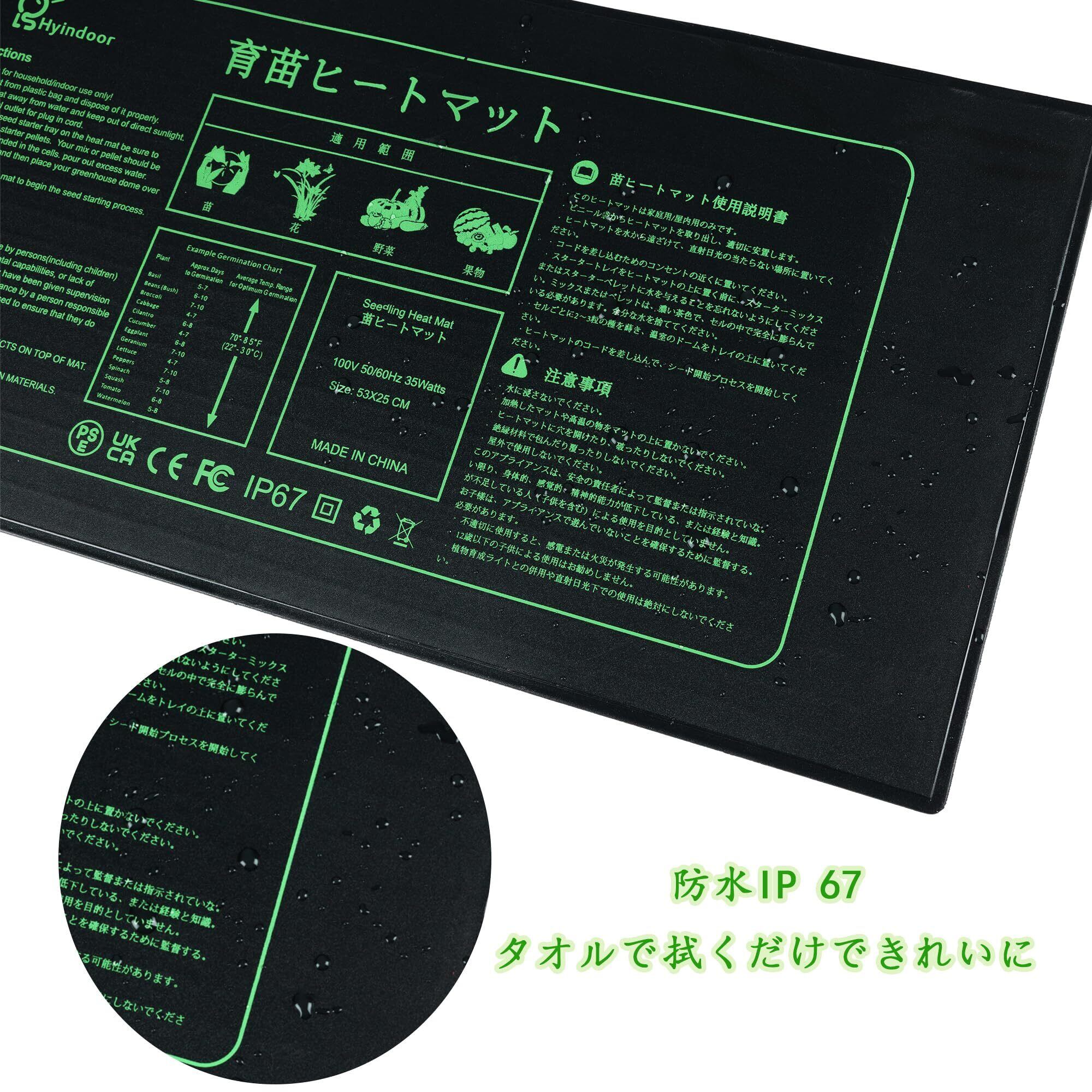 5.ヒーターマットは家庭/室内でのみ使われます。育苗マットは防水性があり、お手入れも便利です。パッケージには日本語の説明書が含まれています。電子版が必要な場合はお問い合わせください。