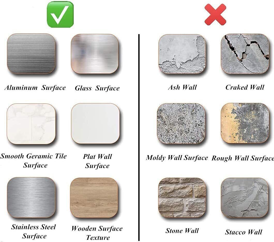 使用面の要求:タイルシールを貼る前に、必ず貼る対象物の埃や汚れを取り除き、表面が滑らかで平らな状態をしてください。例えば、セラミック表面、ガラス表面、平らなソリッドウッドの板表面などです。粗くて凹凸のある表面に貼り付けるのに適用していません。例えば、レンガの壁、石垣、石膏の壁、剝がれやすい壁紙、灰の壁などです。(関連する壁体表面の製品写真がありますので、ご参照ください。)