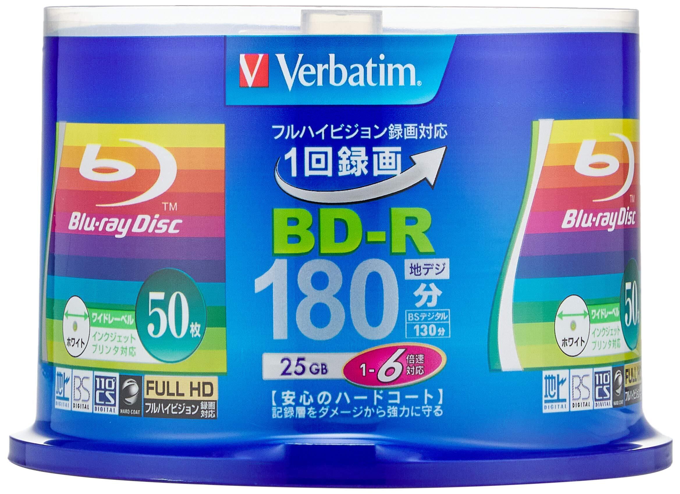 バーベイタム(Verbatim) Verbatim バーベイタム 1回録画用 ブルーレイディスク BD-R 25GB 50枚 ホワイトプリンタブル 片面1層 1-6倍速 VBR130RP50V4