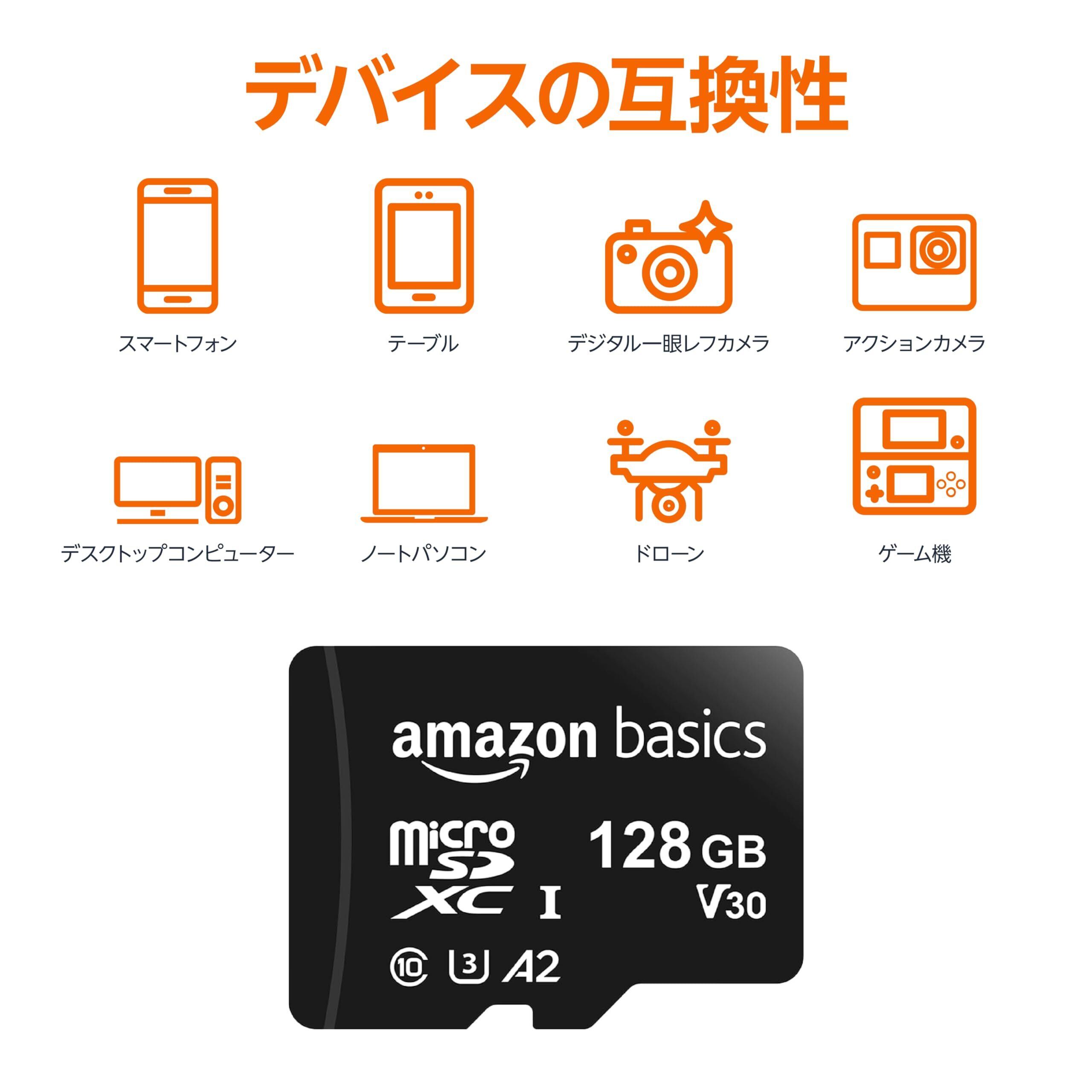 【2022最新】ベーシック microSDXC メモリーカード 128GB フルサイズアダプター付き A2 U3 読み込み速度最大100MB/秒 ブラック