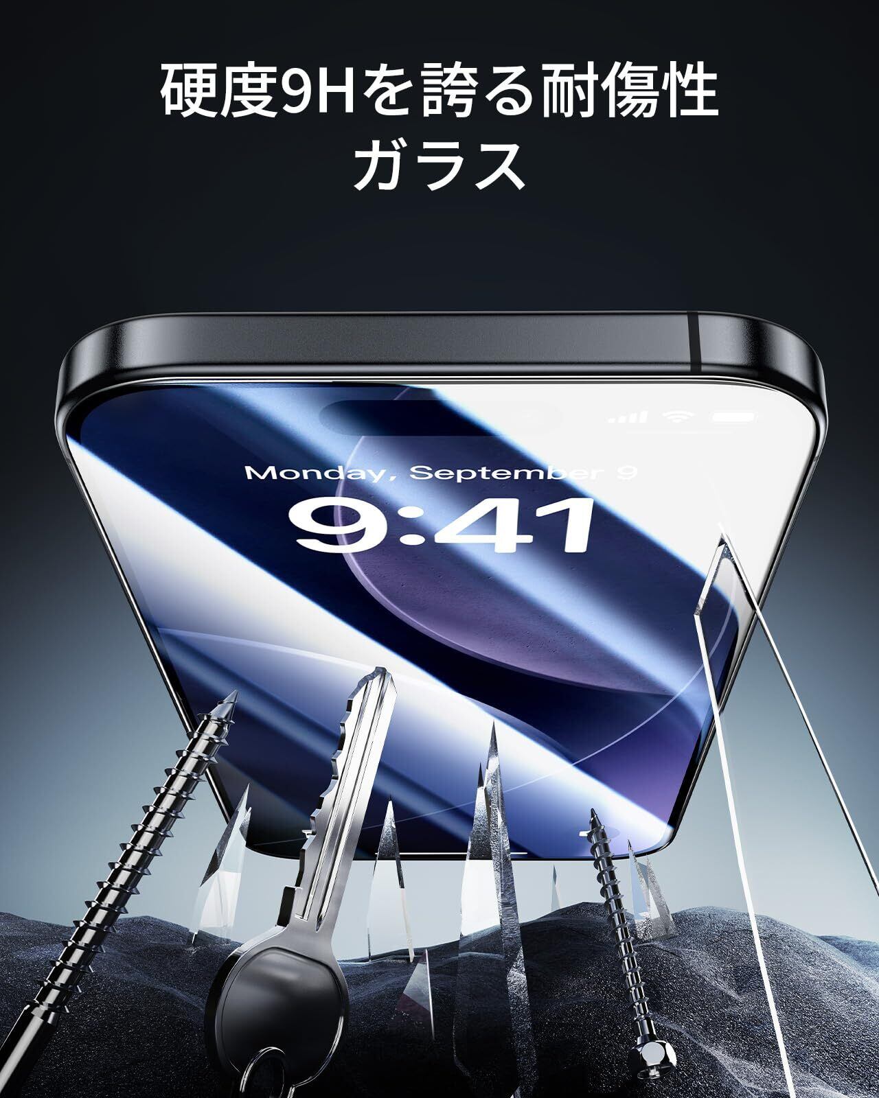 【特価セール】【3秒で完成・50kg耐衝撃】ESR iPhone 17 Pro ガラスフィルム 3枚 9H越え 7倍強化 米軍規格航空材料 自動吸着 指紋防止 AR反射防止 超鮮明な画質 高光沢 気泡無し 目に優しい 飛散防止保護 自動除塵 黒縁あり 高耐久 いPhone17Pro フィルム iPhone17Pro用Armorite超強化ガラス 超簡単2ステップ貼り付けツールUltra Fitトレイ付き | allstore5