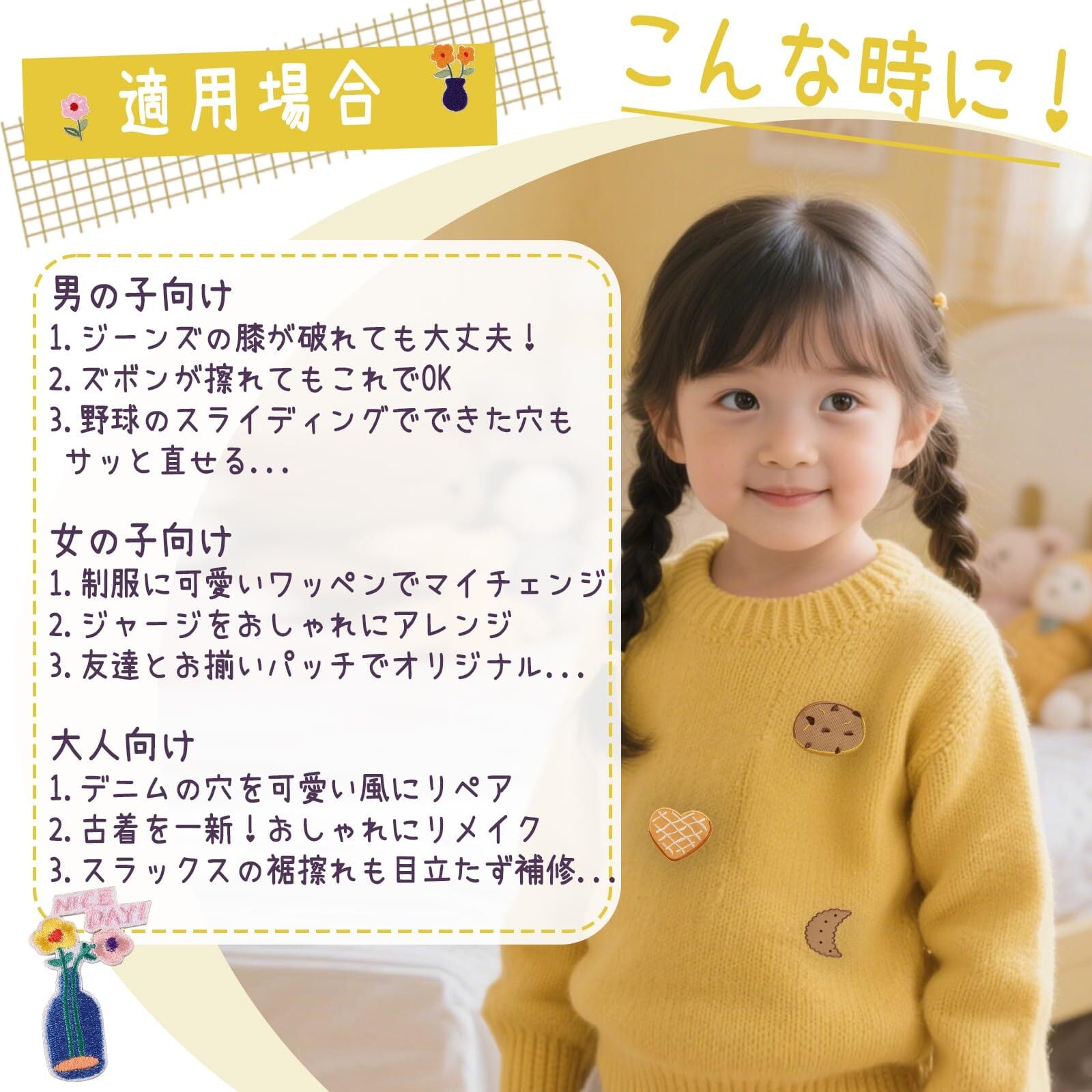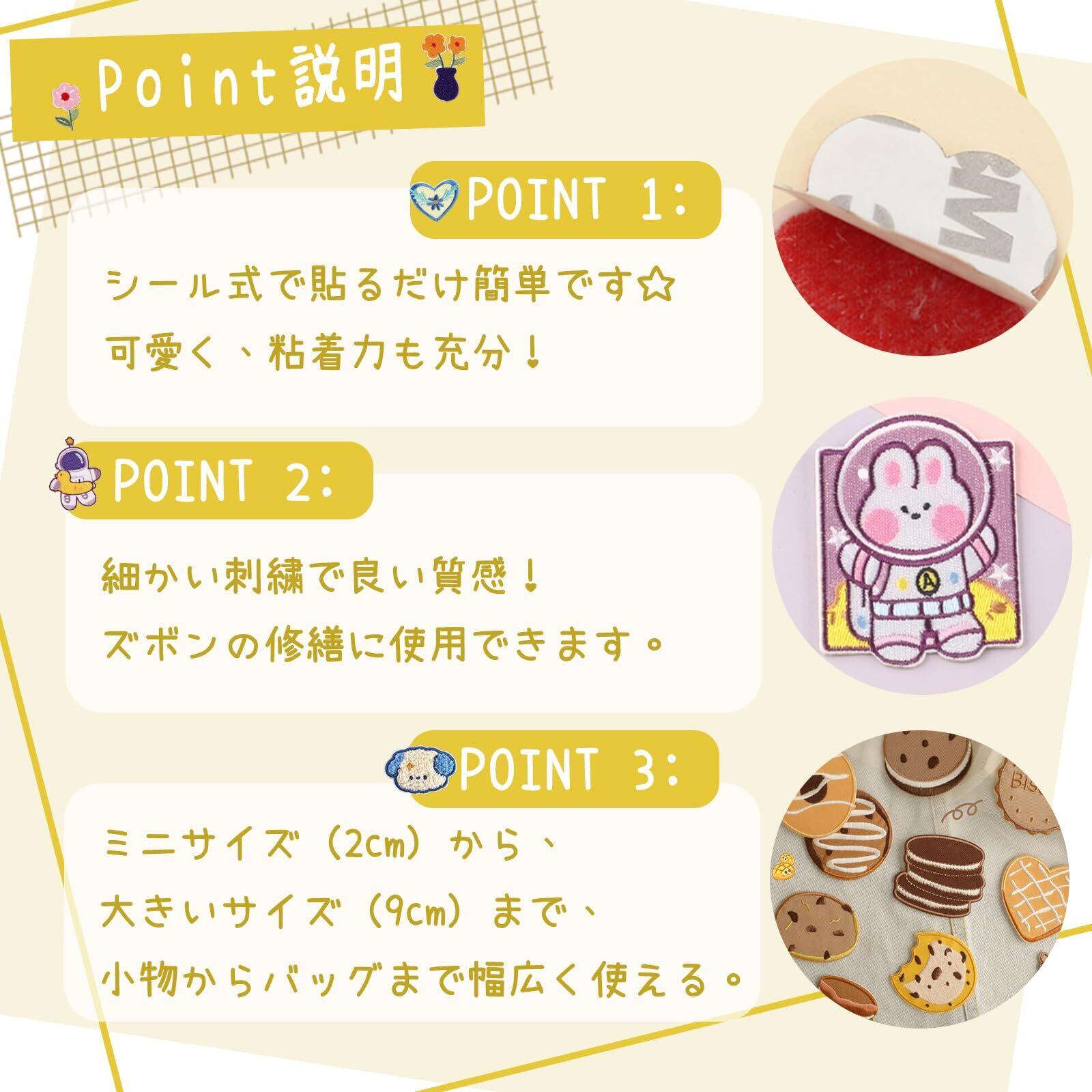【可愛いお得セット】大人気な刺繍ワッペンセット、お値段もお手頃で、ストックしたいくらいの可愛さ!1枚1枚丁寧に仕上げた高品質刺繍アップリケ、デザインはネコ・ハート・動物・花・宇宙飛行士・クッキーなど、好きな柄を選んでください。お好きなところにペタッと貼るだけで、簡単にオリジナルアイテムが完成。色あせしにくく、長期間使用できます。