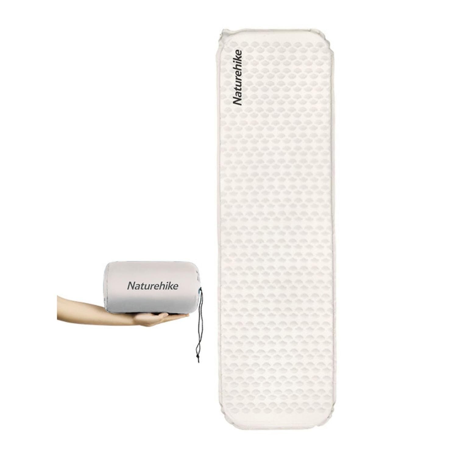 Naturehike【R2.1】エアーマット 自動膨張 超軽量490g 厚手 防水防潮 通気性 汗が溜まらない 両方向バルブ よい寝心地 肌に優しい ソフト 四季使用可能 夏用 収納袋付き コンパクト 携帯便利 ミイラ型 方型 キャンプ用 登山 徒歩 アウトドア テント泊 防災 ソロキャンプ キャンプ 車中泊 インフレーター (大きい長方形-ホワイト)