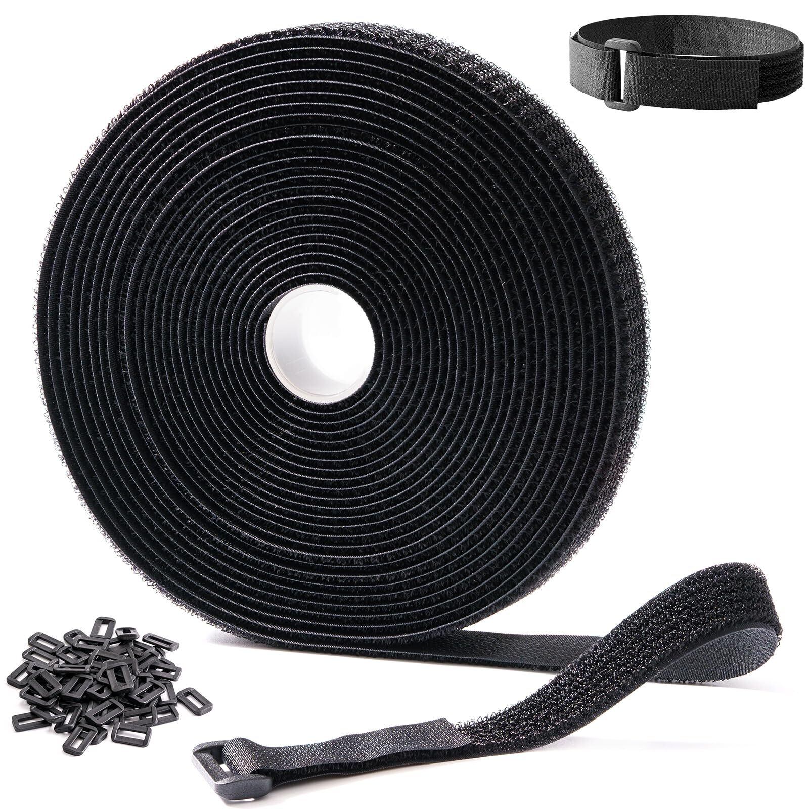 Trilancer 10m x 2cm 再利用可能なケーブル結束バンド、調整できる面ファスナーバンド+バックル50個付き、自由にカット、ワイヤ管理、配線の整理、ケーブルバンド、黒色