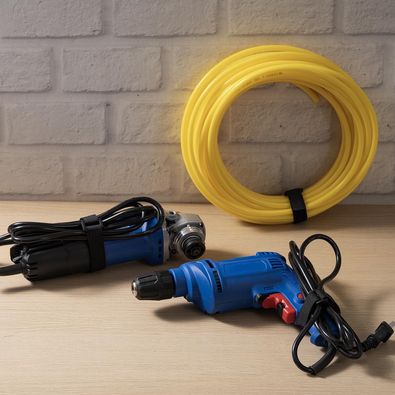 【好きな長さにカット】- これからは、10メートルロールからお好みの長さに調整できる面ファスナーベルトを簡単に作れます。必要な長さに結束バンドを切るだけ。ケーブル、ワイヤ、コードなどのさまざまなサイズのアイテムを整理するのに使えます。