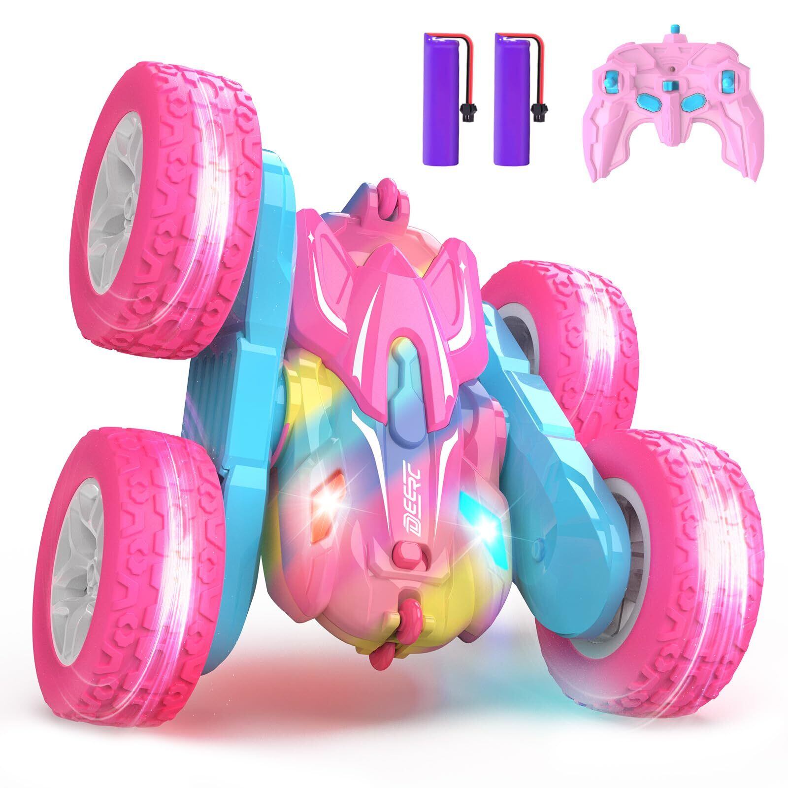 DEERC ラジコン ラジコンカー 子供向け オフロード スタントカー 四輪駆動 両面走行 360度回転 バッテリー2個付き 40分間走れ RCカー 車おもちゃ リモコンカー 2.4Ghz無線操作 子供 男の子 小学生 中学生 誕生日 プレゼント 贈り物 ギフト 入園 日本国内認証済み 日本語取扱説明書 DE87 ピンク