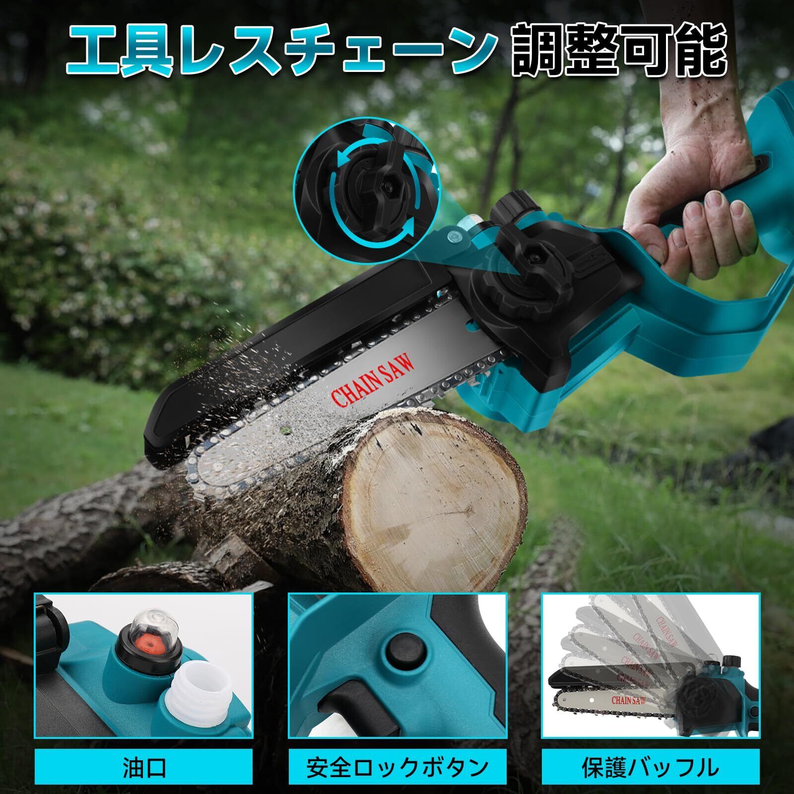 【2022最新】SYAYOUHIN ブラシレス チェーンソー マキタ18V交換 6 インチ 4500/分 チェーン速度4m/s リチウムイオンチェーンソー 充電式 無刷锂电ショーグン锯 切断径15cm 木工道具 アウトドア 庭仕事道具 木材切り 伐採工具 内蔵 ゴーグル+手袋付き 高枝伐採 庭木の剪定 [並行輸入品] | allstore5