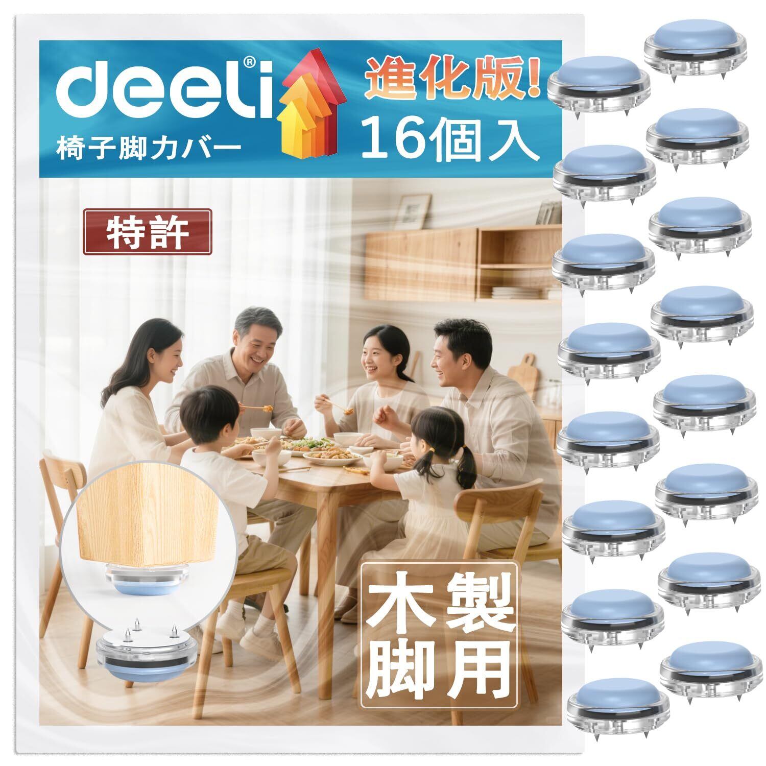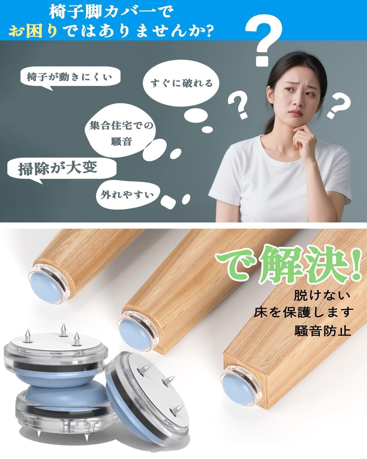 【2025 新型 木製椅子脚カバー】改良テフロン 材質を採用、滑らかさ 4.3 倍・耐摩耗性 1.9 倍向上。接触面に柔軟 TPE エラストマーを使用し、床の傷・衝撃音防止。※木製脚のみ対応。金属脚 / 非水平脚等使用不可。特許登録済み(特許番号:3250438)