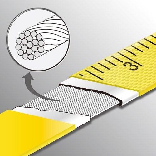 ●衝撃に強いラバーバンパー装着で耐久性が向上しました。●長さの測定。●目盛や文字が摩耗しにくい特殊ダブルコートです。●15000フィラメントのガラス繊維で成形された、世界最高クラスの引張強度です。●白色と黄色のツートンカラー両目目盛でよじれが一目でわかります。