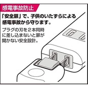 ●180°回転プラグ。耐トラッキングカバー付。 ●熱に強い。 ●使用していないコンセントの刃受口を封じて幼児のいたずらによる感電予防となります。 ●安全の保護被ふく