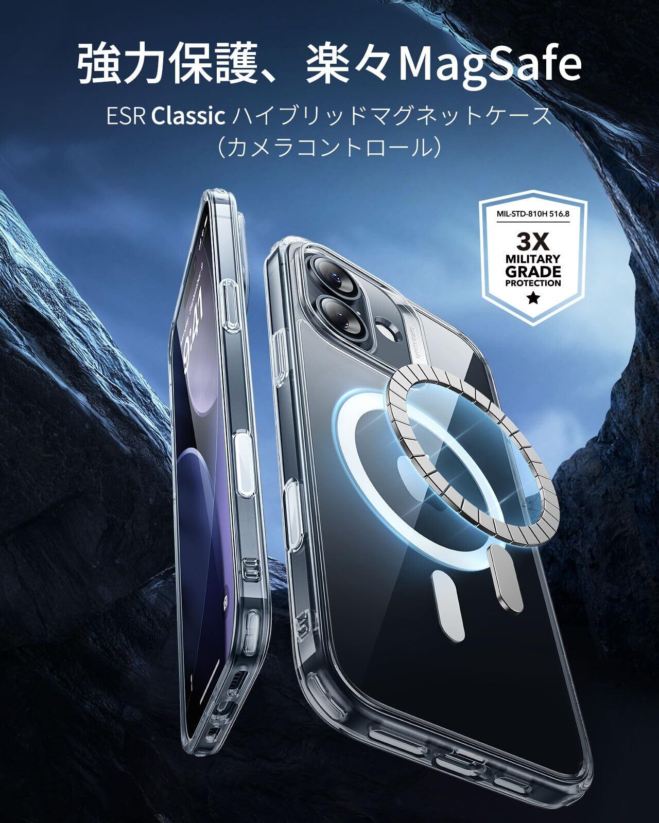 【3倍米軍MIL規格・MagSafe対応】ESR iPhone 17 ケース ワイヤレス充電 iphone17用 カメラボタン付き SGS認証 エアガードコーナー 黄変防止 耐衝撃 PC背面TPUバンパー 指紋防止 高耐久性 マグネットスマホケース Qi2.2対応 最大25W高速充電 マグセーフ いphone17ケース アイフォン17専用Classicシリーズ(クリア)