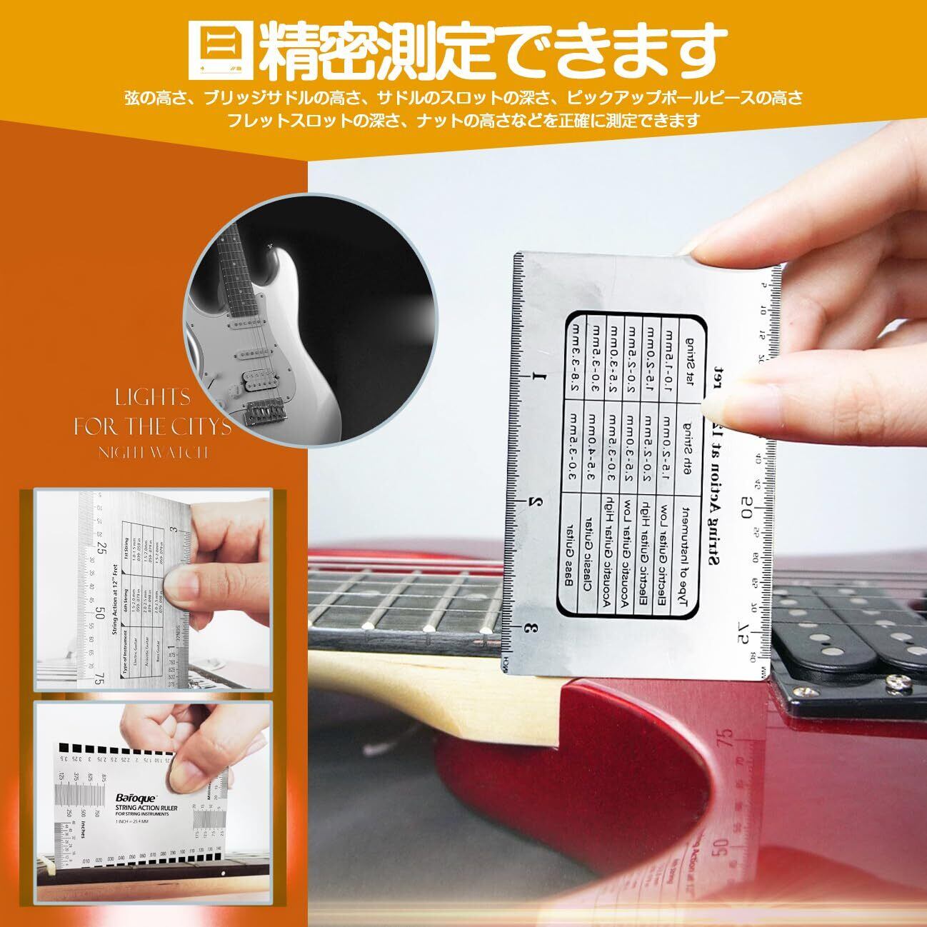 【正確な測定を実現!】この定規は、精密なスケールが刻まれており、無駄なく正確な弦高を測定できます。ギターの種類やプレイスタイルに応じて最適な弦高を設定することで、演奏性を向上させることができます。