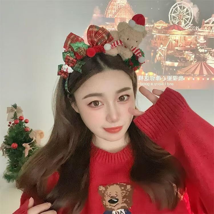 【新春セール】[RidrificM8] 【2024年クリスマス飾り】クリスマス カチューシャ クマ リボン結び 雪だるま 毛玉 小道具 クリスマス雰囲気満々 コスプレ レディース 子供 可愛い 小物 前髪留め 仮装 パーテ ィー グッズ 髪飾り 写真撮影用(クリスマスのクマ) | allstore5