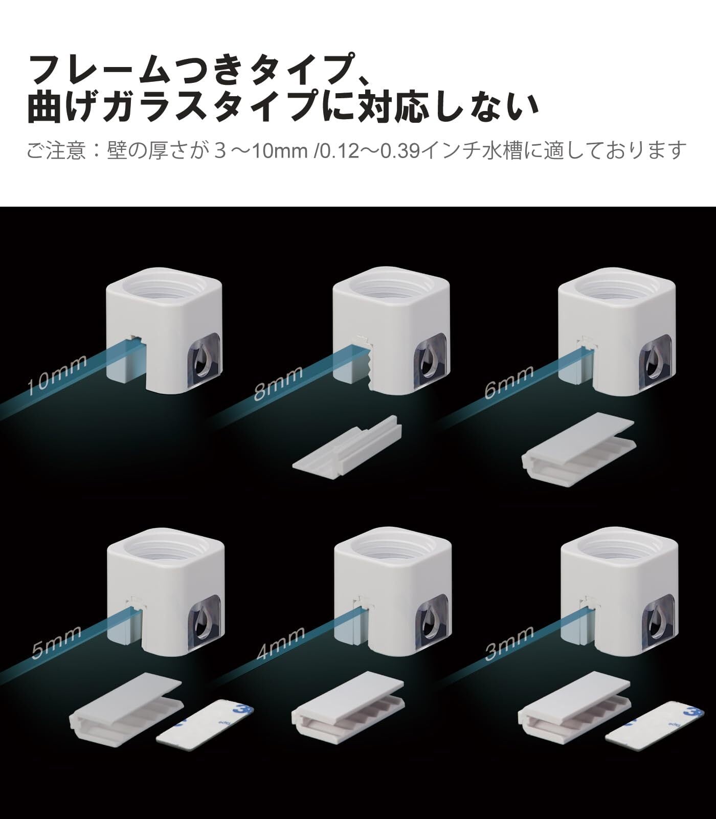 孵化器キットはタンク壁に掛ける必要があり、タンク壁の厚さ3~10mm/0.12 ~ 0.39インチに適しています。蓋付き 、曲げガラス水槽には対応していません。