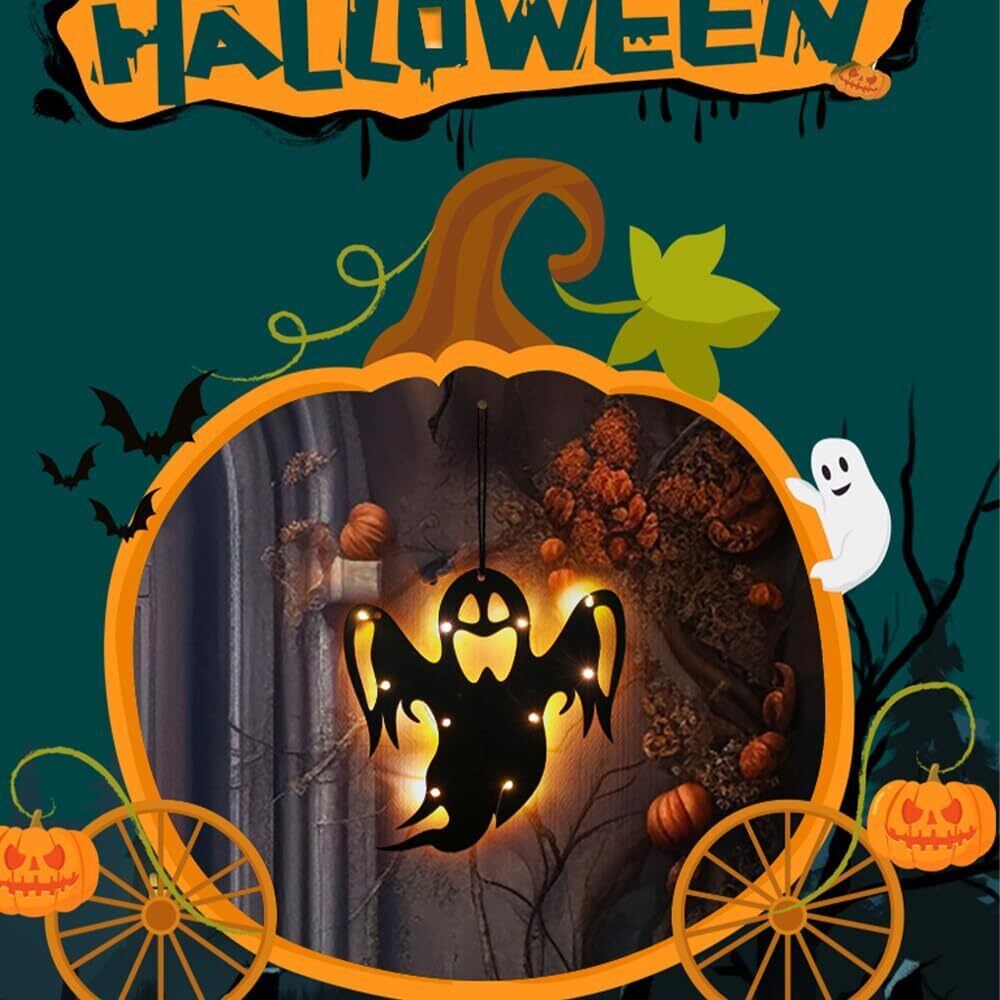 Hopeholic ハロウィン 飾り led 吊り下げ式 ライト ハロウィン 装飾 窓 壁 ドア 玄関飾り パーティー グッズ 蜘蛛 かぼちゃ 魔女 幽霊 猫 城 コウモリ 蜘蛛の巣 パーティーに飾り halloween decoration (2個セット, 幽霊+猫)