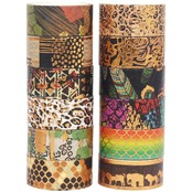 【商品仕様】幅15mm、長さは3m、合計12個が入っているマスキングテープセットです。野生動物の皮紋 柄を取り入れ、お好みと意匠によってテープを自由に切ったり、合わせたりすることができます