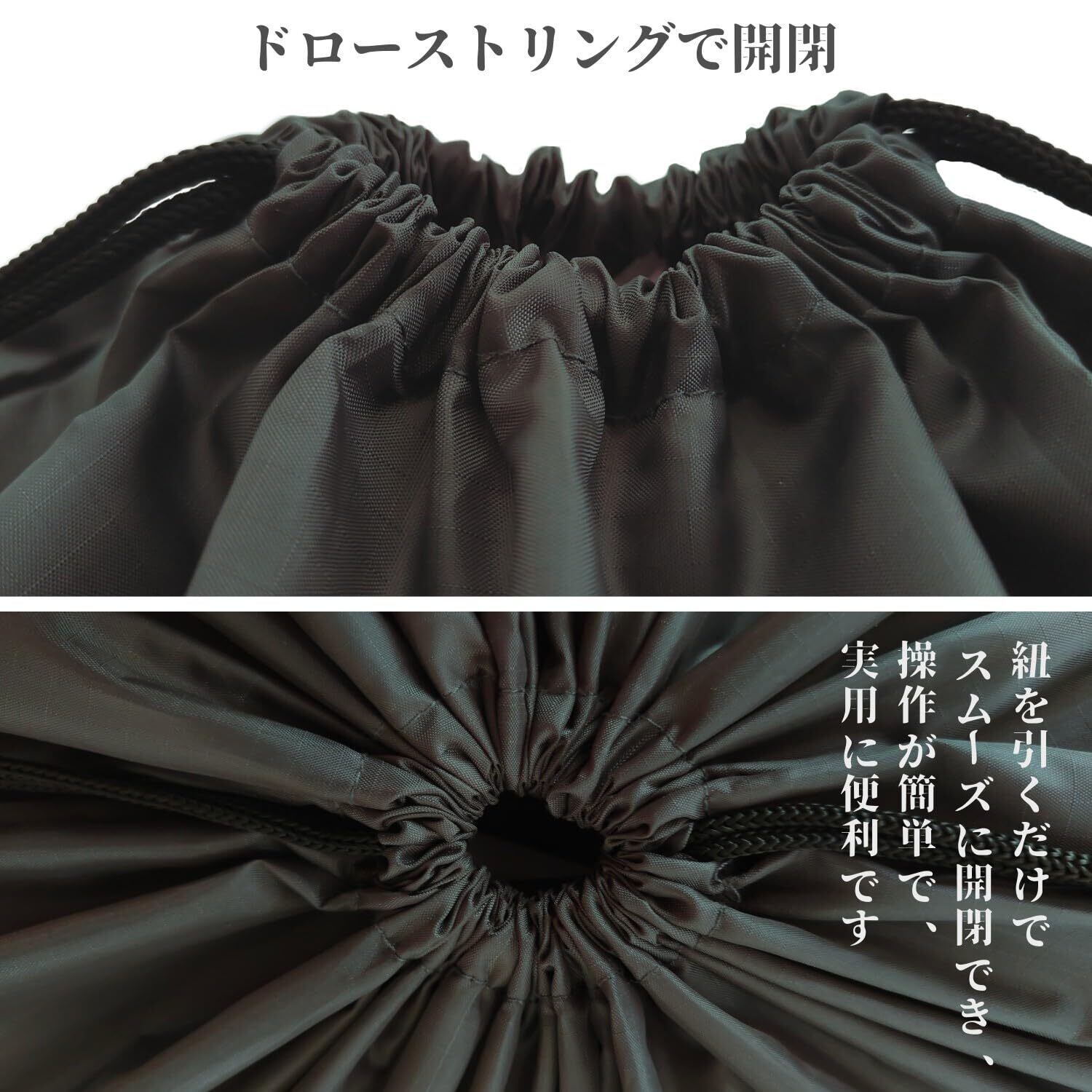 【軽量・頑丈で耐久性・持ち運びやすい】RUSUNMの巾着袋は、軽量ながら丈夫な生地でできている。使わないときは折りたたんで簡単に収納でき、ポケットに入る大きさで、簡単に持ち運びができます。