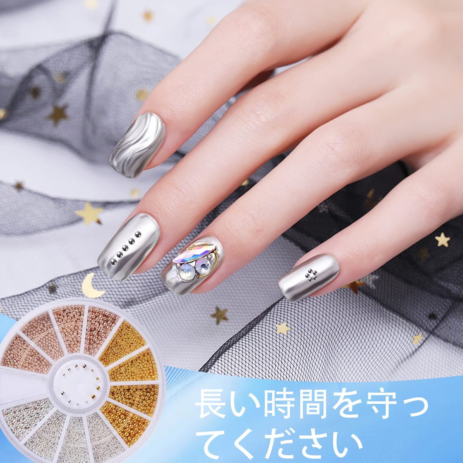 【ネイルアート用ブリオン】球体デザインで立体感と抜群の存在感。シルバー、ゴールド、ローズゴールドの3色があり、好みのデザインに合わせてブリオンを選ぶことができ、どんなアイテムや色にも合う。