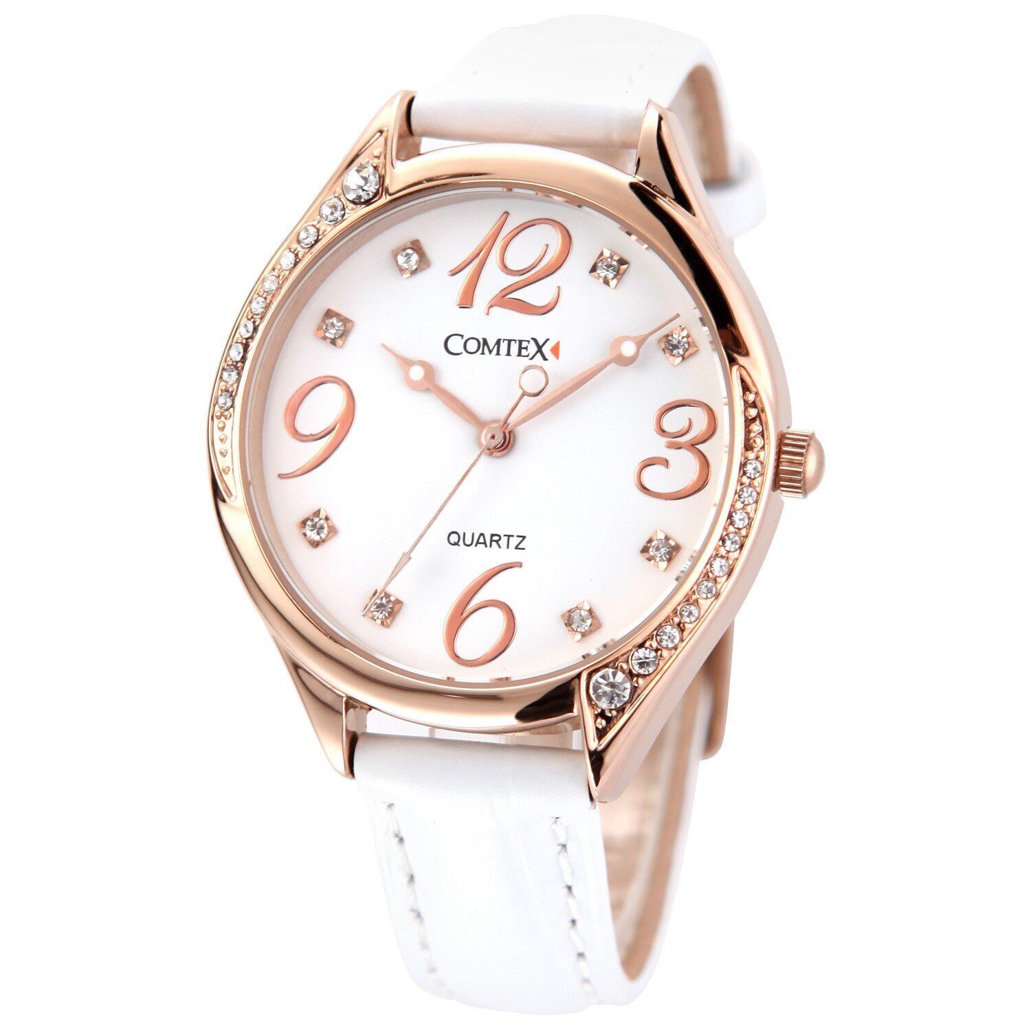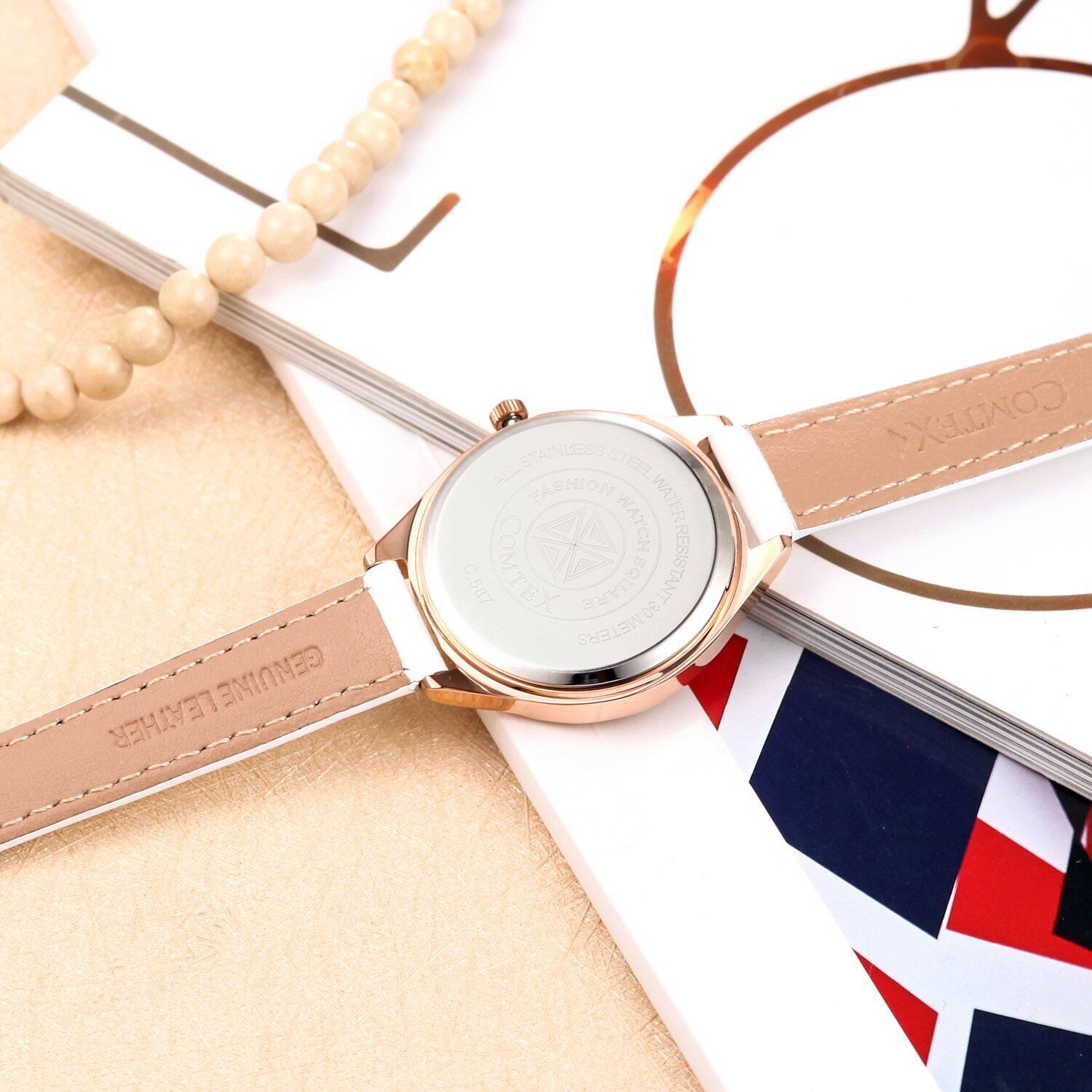 Comtex 腕時計 ホワイト皮革 バンド ウォッチ ローズゴールド 可愛い 丸い 時計 レディース