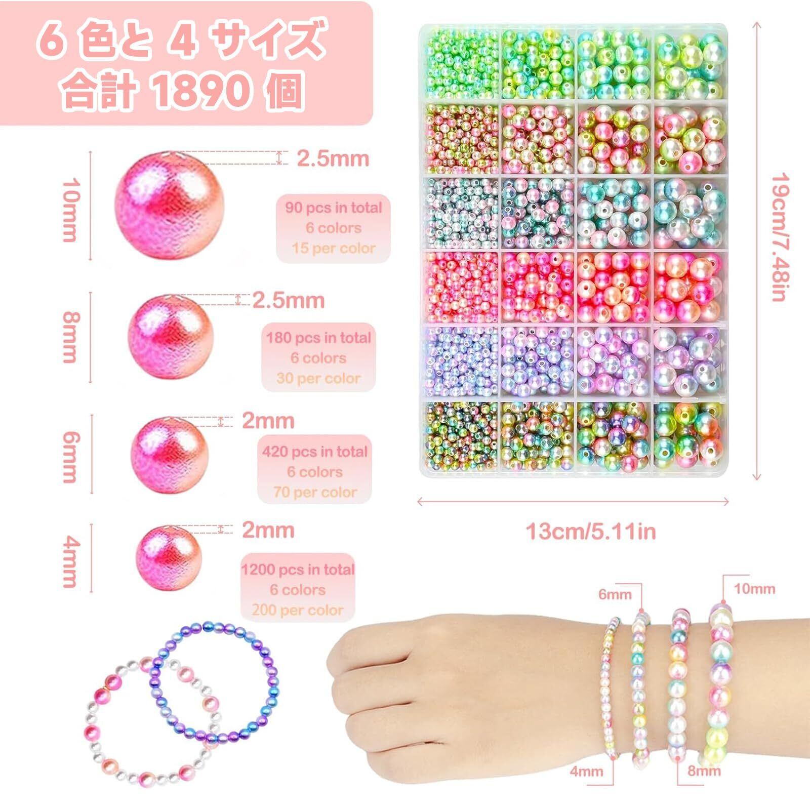 【お得なセット】6色4/6/8/10mmパールビーズキット、4mmビーズ各色約200個、6mmビーズ各色約70個、8mmビーズ各色約30個、10mmビーズ各色約15個、合計約1890個、24コンパートメント収納コンテナ。