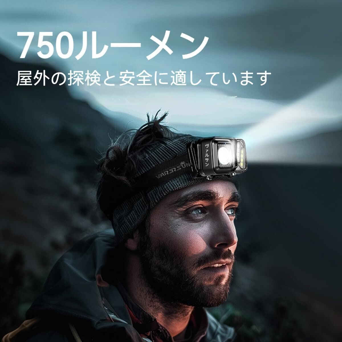 【WARSUN SN08】充電式超軽量ヘッドライト – 750ルーメン 高輝度 LEDヘッドトーチ モーションセンサー搭載 5モード 45°角度調整可 ヘルメット装着対応 夜間ランニング・釣り・キャンプ・自転車・作業用