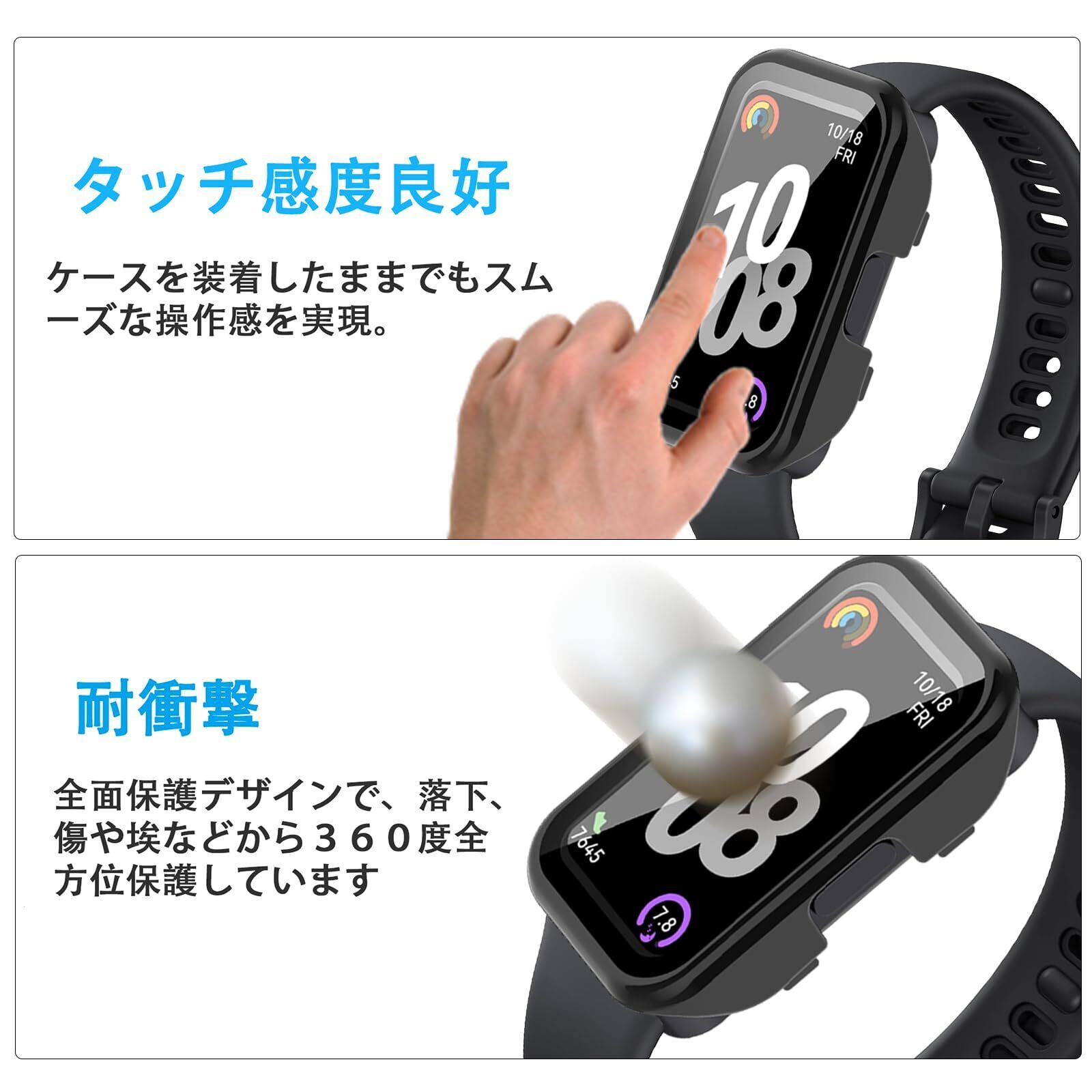 【高級感が溢れるデザイン&装着が簡単】 HUAWEI BAND 10/9/8保護カバー+液晶ガラスフィルムの融合された革新的な一体型デザイン。取付け道具不要、HUAWEI BAND 10/9/8本体の上から嵌めるだけで楽に装着できます。従来のフィルム貼りの手間も省けます