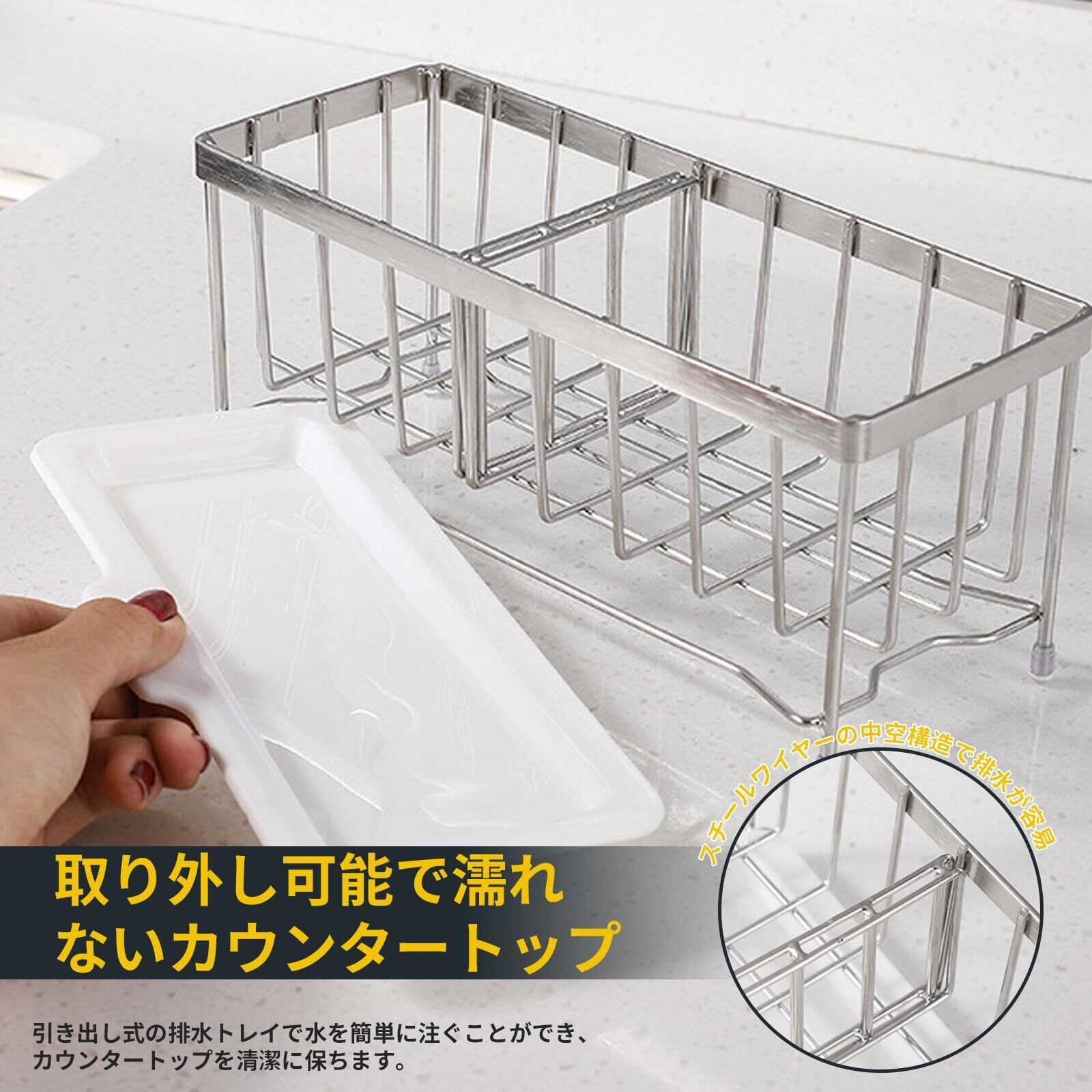 【滑り止め】底部の4個の足に滑り止めシリコン製の脚カバーキャップ付いて、直接に流し台に置いても、カビ水垢がつくことを防ぎます。受け部が高い位置にあるので通気性がよく衛生的で、水切れも優秀