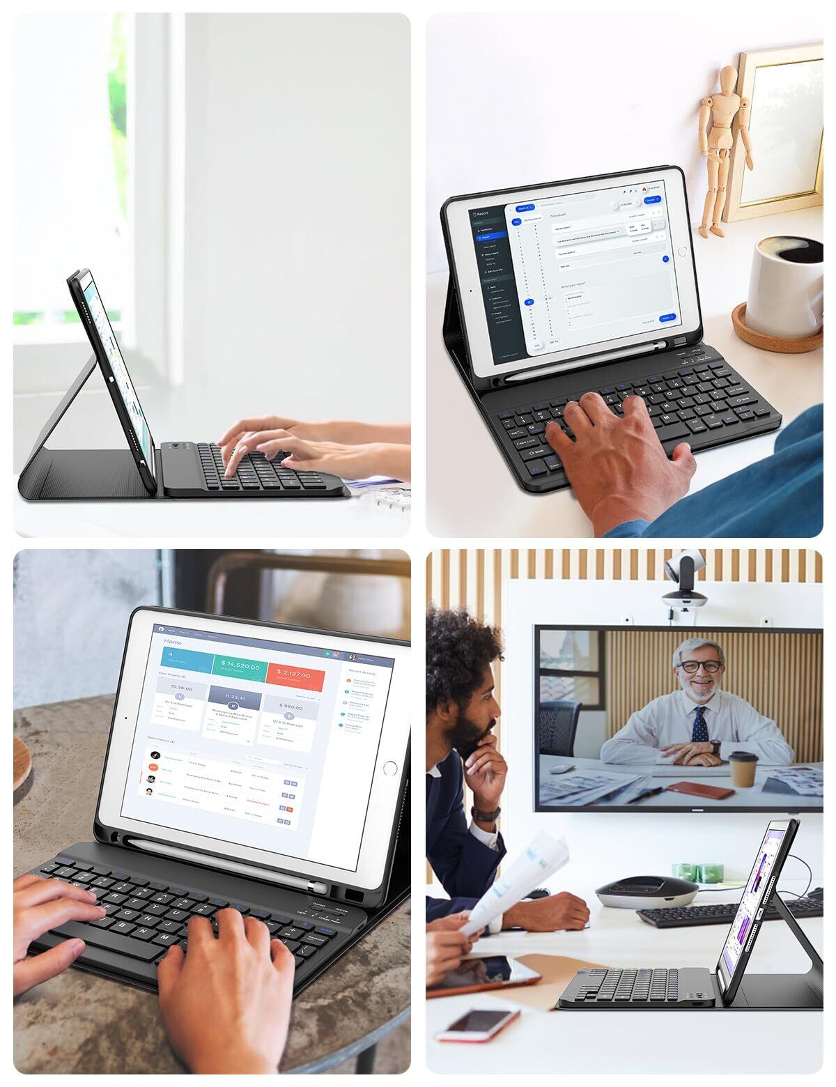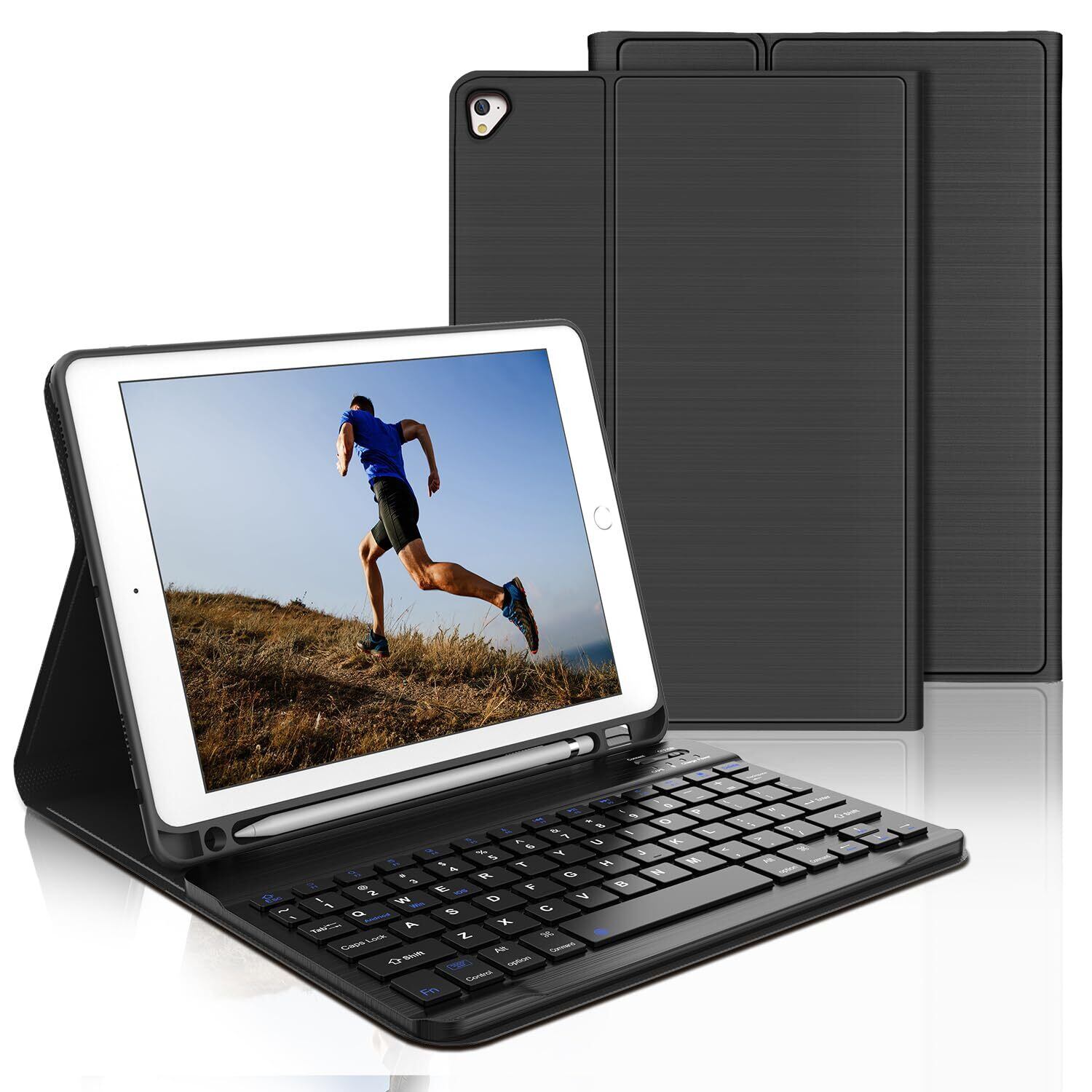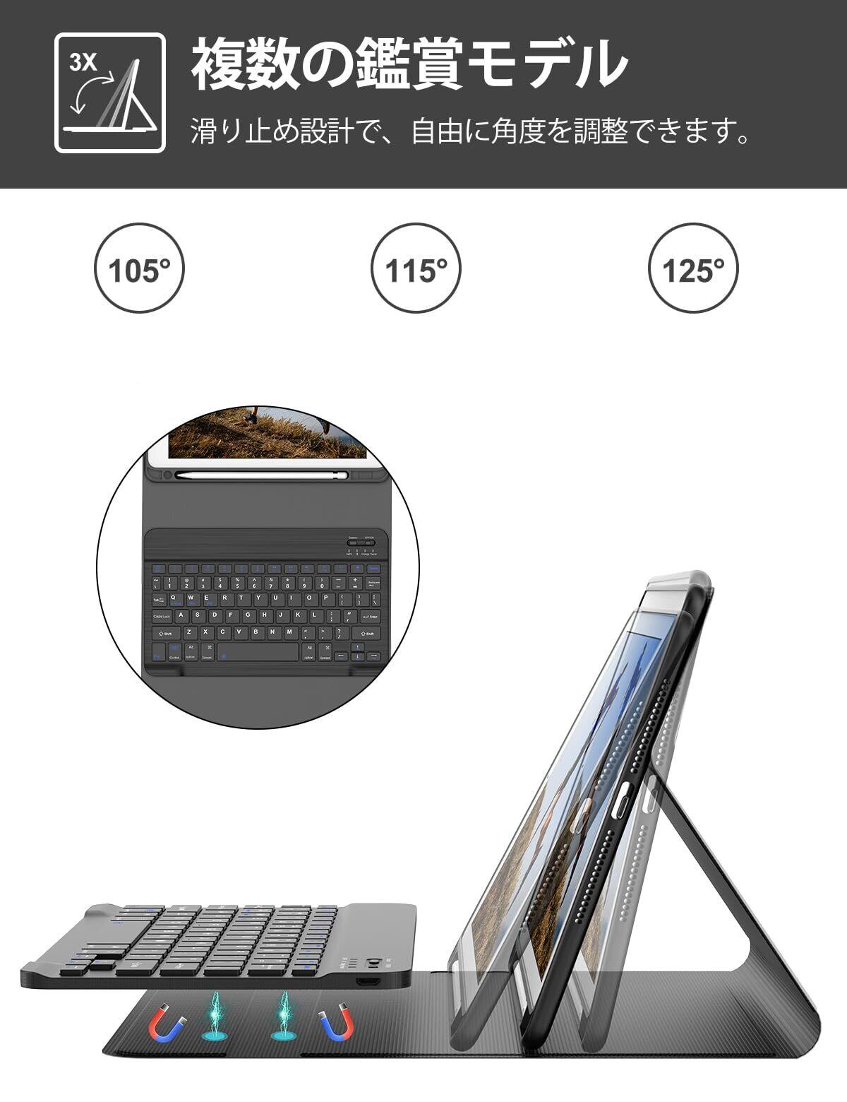 iPad 第6世代 キーボードケース 第5世代 キーボード (9.7インチ) iPad Pro 9.7 キーボード iPad Air 第2/1世代に適用 Bluetooth ワイヤレス キーボードカバー 脱着式 オートスリープ機能 多角度調整 傷つけ防止 (ブラック)