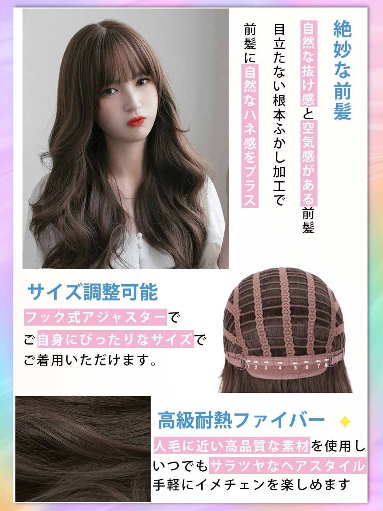 【ウィッグ素材】高品質耐熱ファイバーを使用の耐熱ウィッグ、コテ・アイロンも使用OK(160度まで)。光沢の少ない「ファイバー」を採用し、人毛に近いしっとりとした自然な手触りを作成しています。【サイズ調整可能】ウィッグがサイズ調整できるので、ぴったりなサイズでご着用いただけます。
