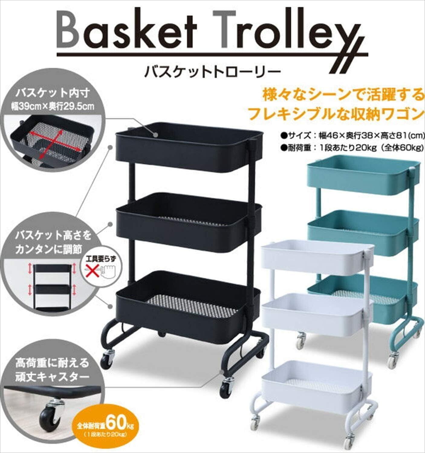 【特価セール】山善(YAMAZEN) キッチンワゴン 高さ調節可能 全体耐荷重60k メッシュタイプ キャスター付き 幅46×奥行38×高さ81cmg バスケットトローリー 組立品 ブラック LBT-3(BK)