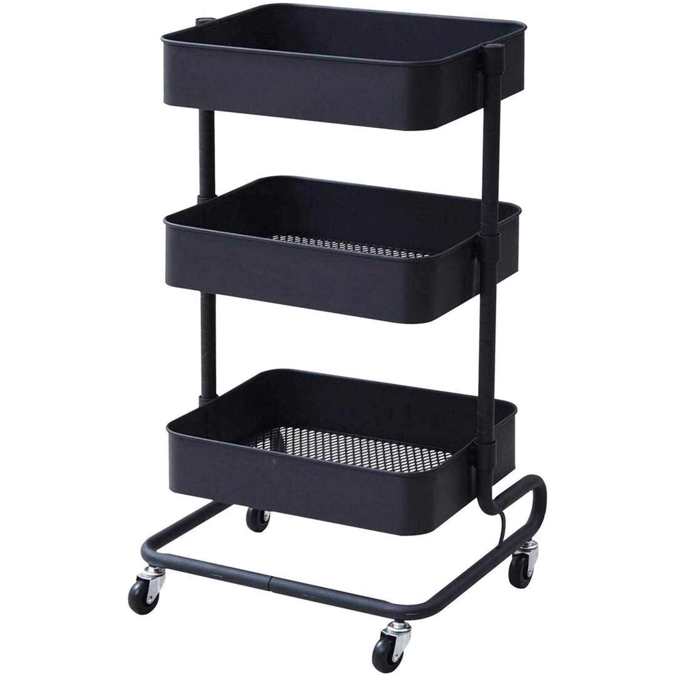 山善(YAMAZEN) キッチンワゴン 高さ調節可能 全体耐荷重60k メッシュタイプ キャスター付き 幅46×奥行38×高さ81cmg バスケットトローリー 組立品 ブラック LBT-3(BK)