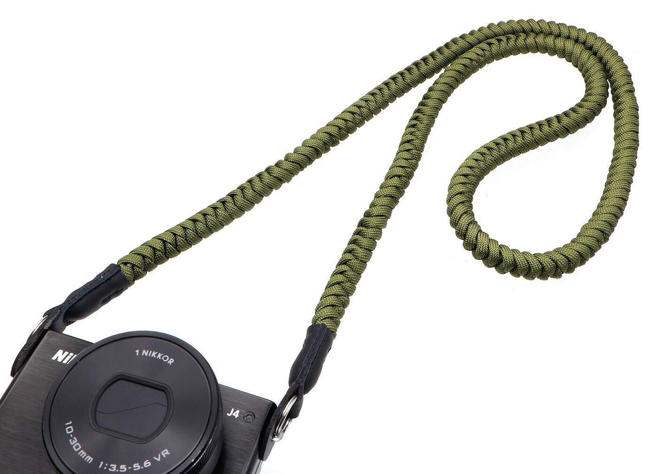 アウトドアでよく使われたパラコードで編み込まれます。耐久性と耐摩耗性に優れたカメラストラップです。