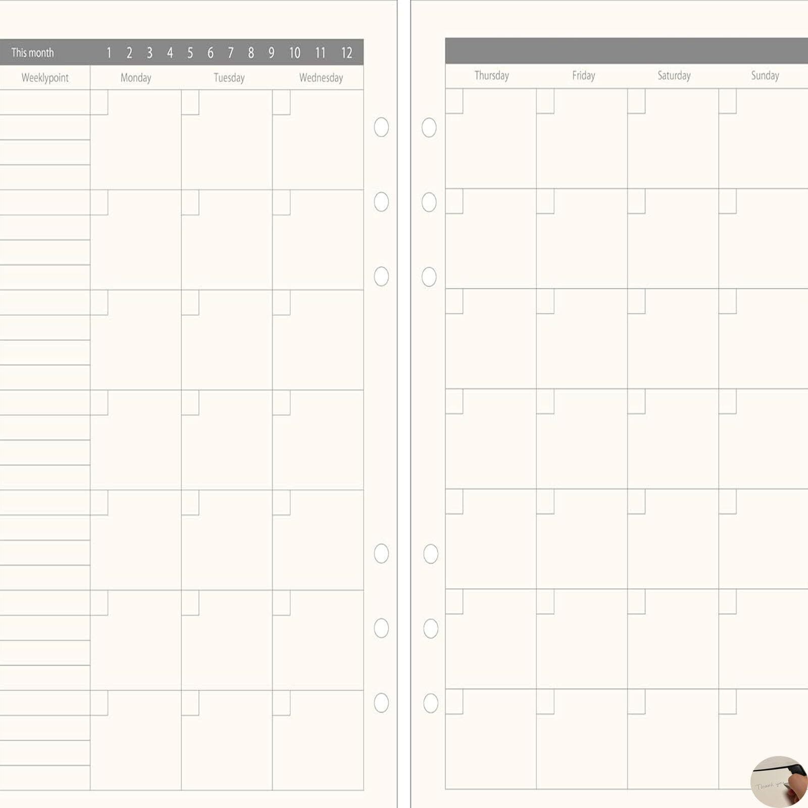 【新着商品】Mirhua 手帳リフィル A5サイズ 月間 マンスリー スケジュール 6穴 「今すぐ始められる」 リフィル 大容量44ヶ月分 日付なしタイプ 月曜始まり システム手帳 | allstore5