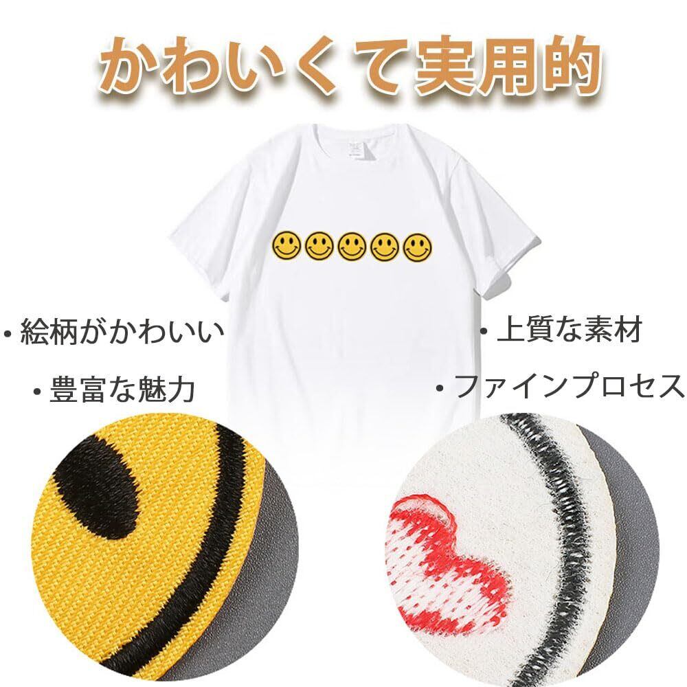 【新着商品】サムコス 刺しゅうパッチ アイロンワッペン セット ファッション 漫画 かわいい DIY装飾 アクセサリー ぼうし バッグ 衣類 飾り (イエロー 笑顔)