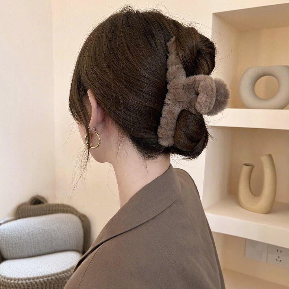 【2022最新】shefun ヘアクリップ 大きめ しっかりとまる 髪留め バンスクリップ 黒 茶 2個セット ヘアクロー 大 ふわふわ レディース クリップ 髪飾りJP229 | allstore5