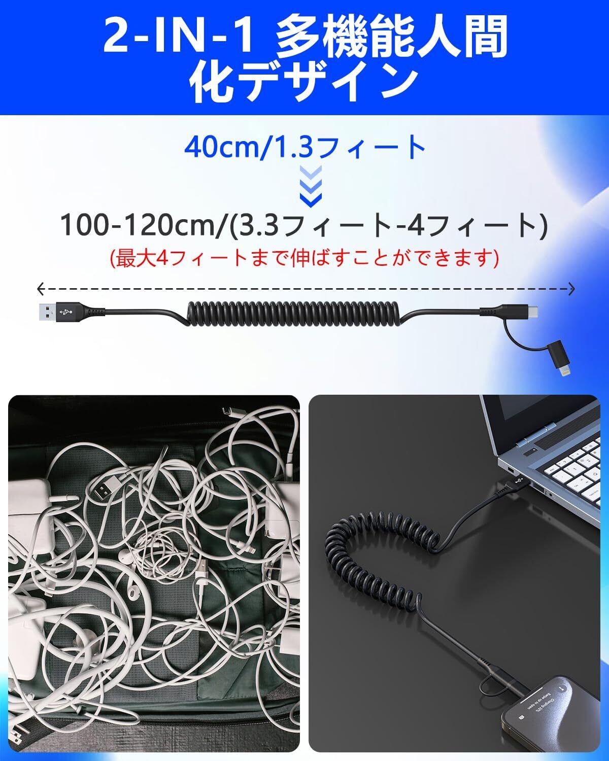 【新着商品】2in1 USB-A - USB-C および ライトニングケーブル カールコード、MFi認証 & Apple Carplay & Android Auto対応 iPhone充電ケーブル 3A/2.4A充電と高速データ転送ケーブル、iphone ケーブル 伸縮 高耐久iPhone15/14/13/12/11/X/XS/8/7/6sPro/ProMax/iPod/Galaxy/Android 各種対応 | allstore5