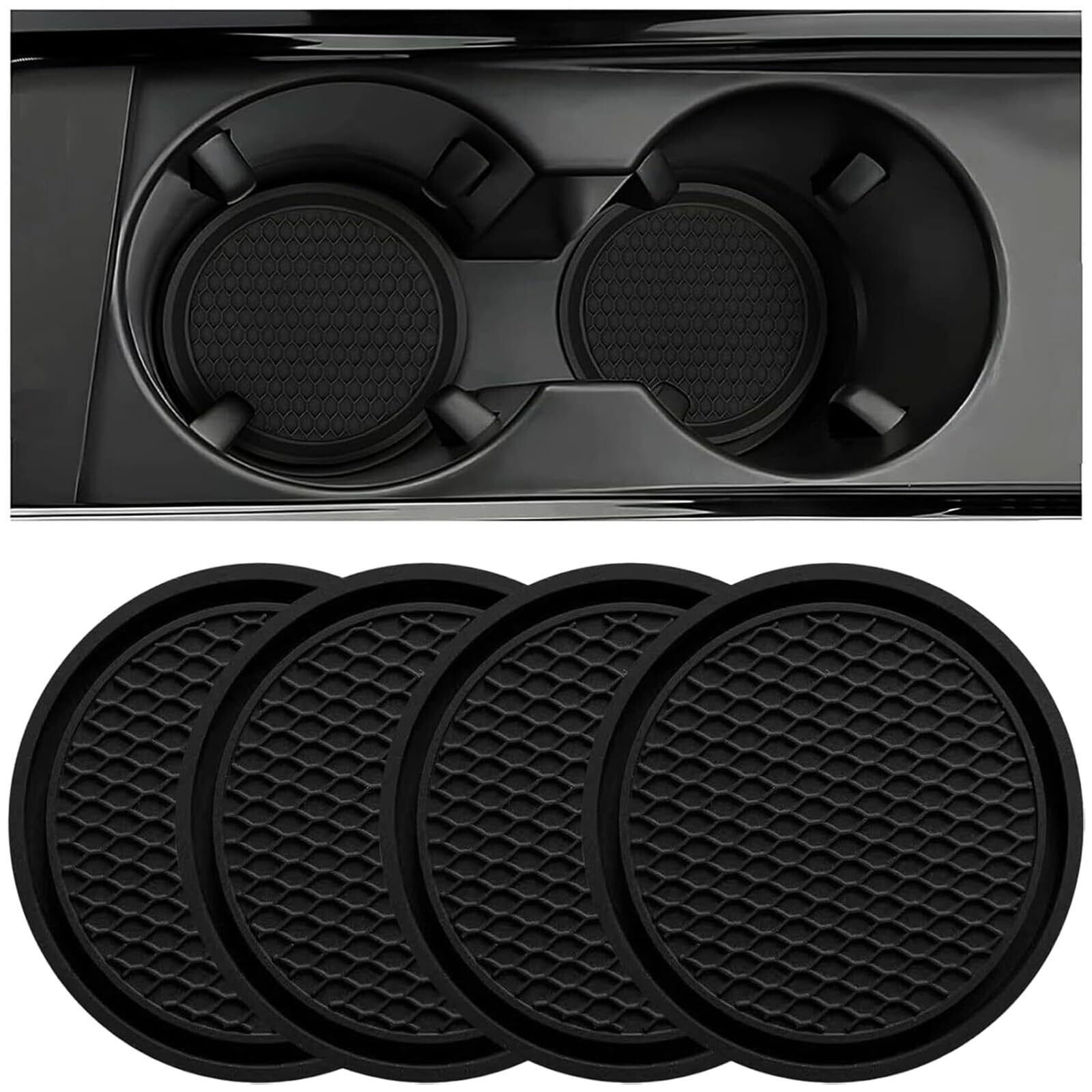 【在庫処分】カーカップコースター、オーナメントコースターに埋め込まれたユニバーサルノンスリップカップホルダー4個、カーインテリアアクセサリー(black)
