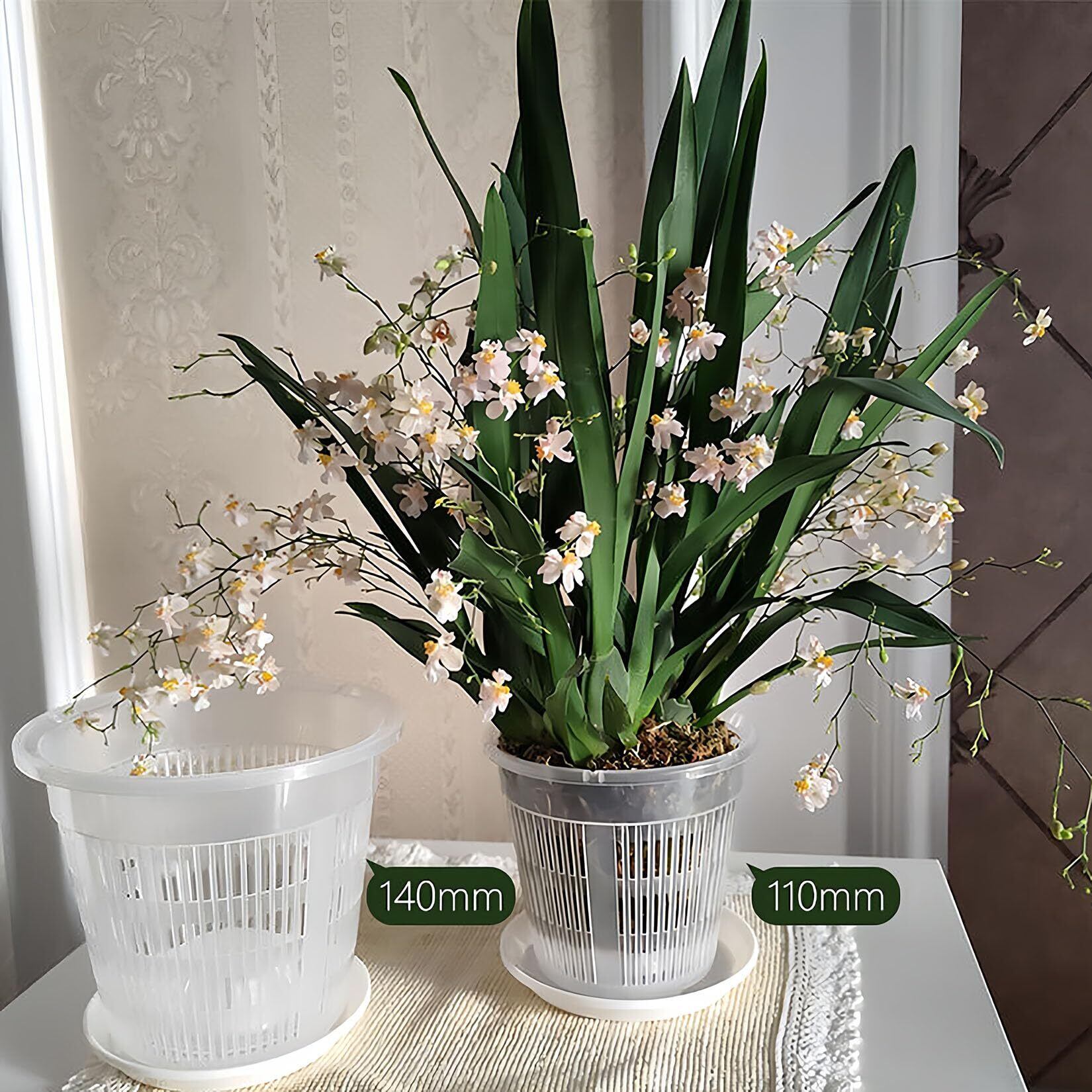 高品質透明プラスチック製植木鉢:耐久性に優れた透明プラスチックで作られた当製品は、根の成長を直接確認でき、通気性と排水性も抜群です。植木鉢、多肉植物、胡蝶蘭鉢としての利用に最適で、室内外のどちらでもご使用いただけます。